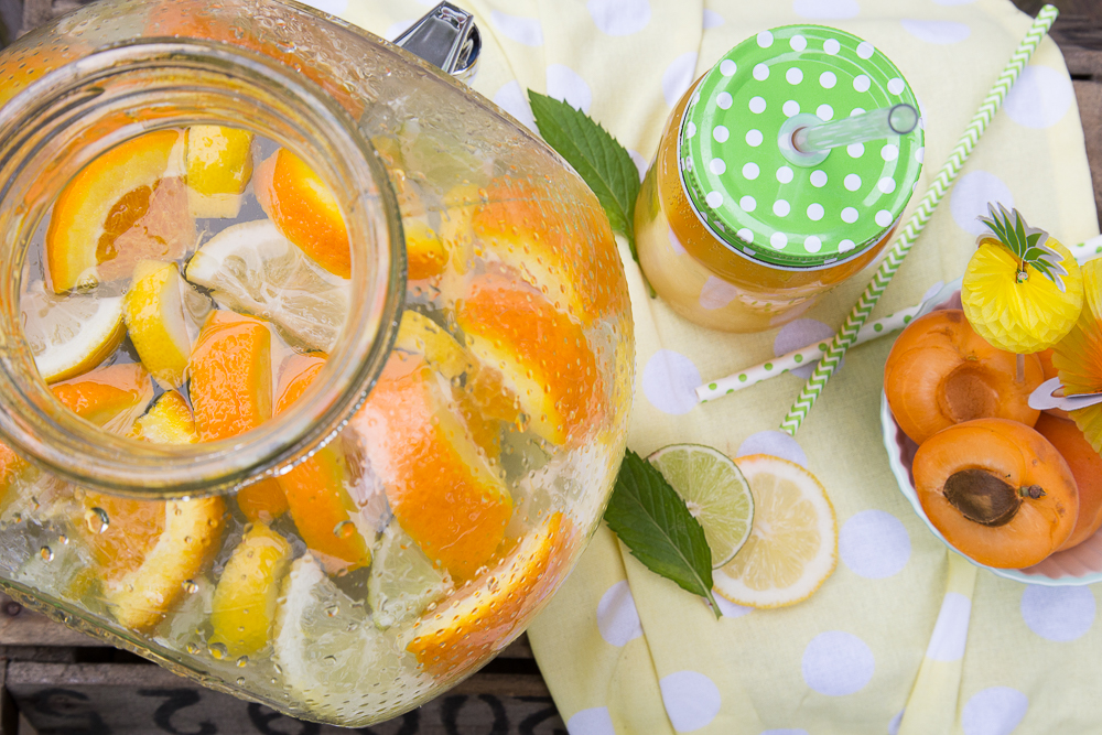 An heißen Sommertagen tut eine kühle Erfrischung besonders gut. Wasser ist der gesündeste Durstlöscher überhaupt und man sollte genug davon trinken. Ich finde „nur Wasser“ manchmal sehr langweilig und peppe es gern mit Obst etwas auf. Zur Zeit sind diese sogenannten „Detox Wasser“ oder „Infused Water“ sehr angesagt und sind erfrischende Sommerdrinks – Wasser mal anders. Sie sind sehr gesund, fettarm, sorgen für schöne Haut und entschlacken den Körper.