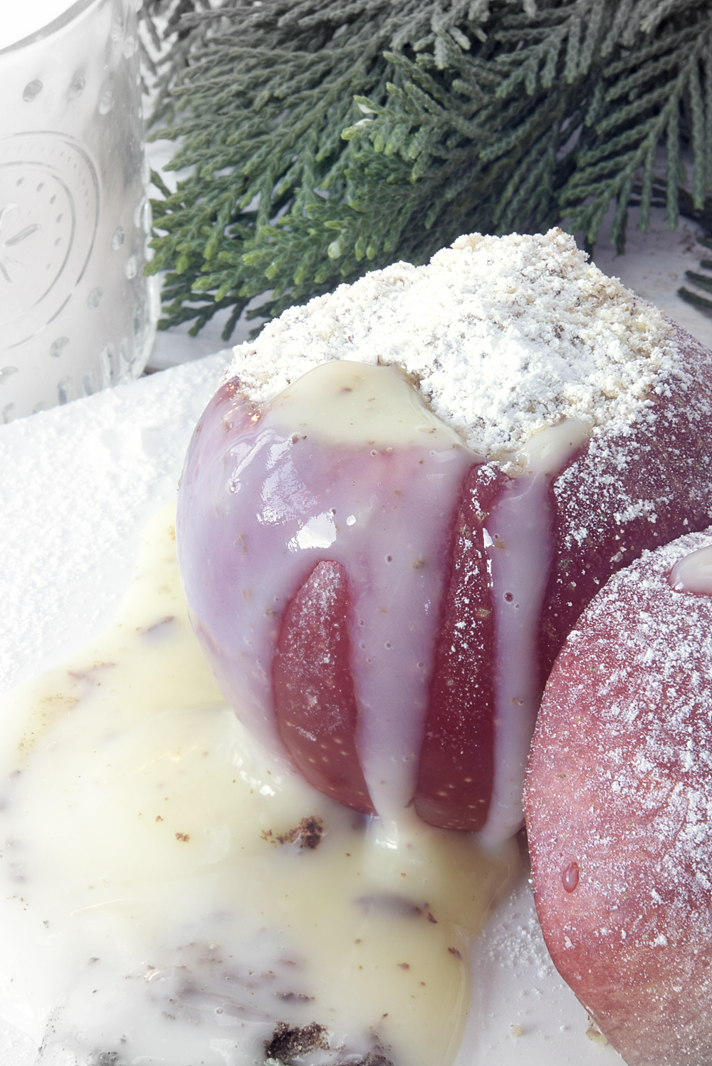 Das schönste an der Winterzeit ist doch, wenn man nach einem langen Spaziergang durch Schnee und Kälte in die warme Küche kommt und einem der süße Duft eines frisch gebackenen Bratapfels in die Nase steigt. Es duftet nach Zimt, Lebkuchengewürzen, Äpfel und Vanille – wer kann da schon widerstehen? Genauso wie die Weihnachtskekse, so gehört auch der traditionelle Bratapfel für mich zur Weihnachtszeit. Früher verwendete man für dieses winterliche Dessert Äpfel, die man im Sommer im Keller eingelagert hatte. Am besten eignen sich säuerliche Äpfel, wie zum Beispiel der Boskop.