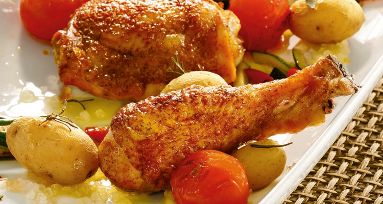 Geflügel und insbesondere Huhn ist eine der am vielfältigsten einsetzbaren Zutaten in der Küche. Das Eiweiß des Huhns ist dem des Menschen ähnlich und kann daher besonders gut verwertet werden. Hühnchenfleisch ist darüber hinaus fettarm und stärkt, als Brühe genossen, das Immunsystem. Die Schenkel haben dunkleres, saftiges und aromatisches Fleisch und werden auch als ‚Drumsticks‘ bezeichnet. Huhn sollte kühl gelagert und Arbeitsgeräte nach dem Gebrauch gründlich gereinigt werden, da Geflügel grundsätzlich anfällig für Keime ist. Tiefgekühltes Fleisch sollte nach dem Auftauen keinesfalls wieder eingefroren werden.