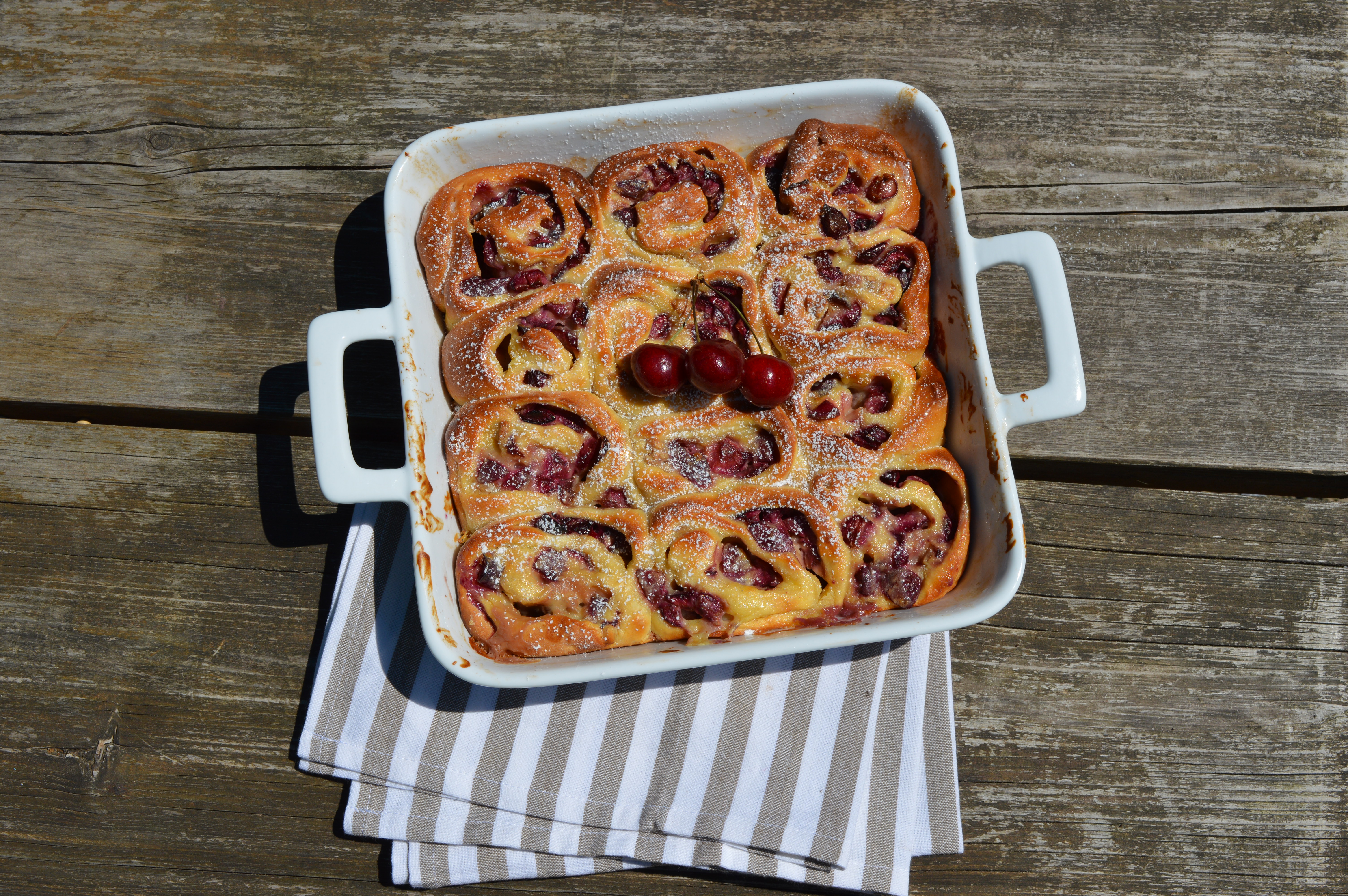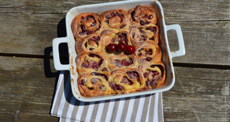 Sommer – Sonne – Sonnenschein! Das Wetter verwöhnt uns in diesen Tagen mit richtig viel Sonne und bringt damit ganz viel gute Laune.  Wie wäre es bei der nächsten Pool- oder Gartenparty mit ein paar kleinen, aber leckeren Hefeschnecken? Gefüllt mit einer leichten Puddingcreme, sommerlichen Süßkirschen und knackigen Walnüssen sind die ganz bestimmt der Hit bei jedem Gast!