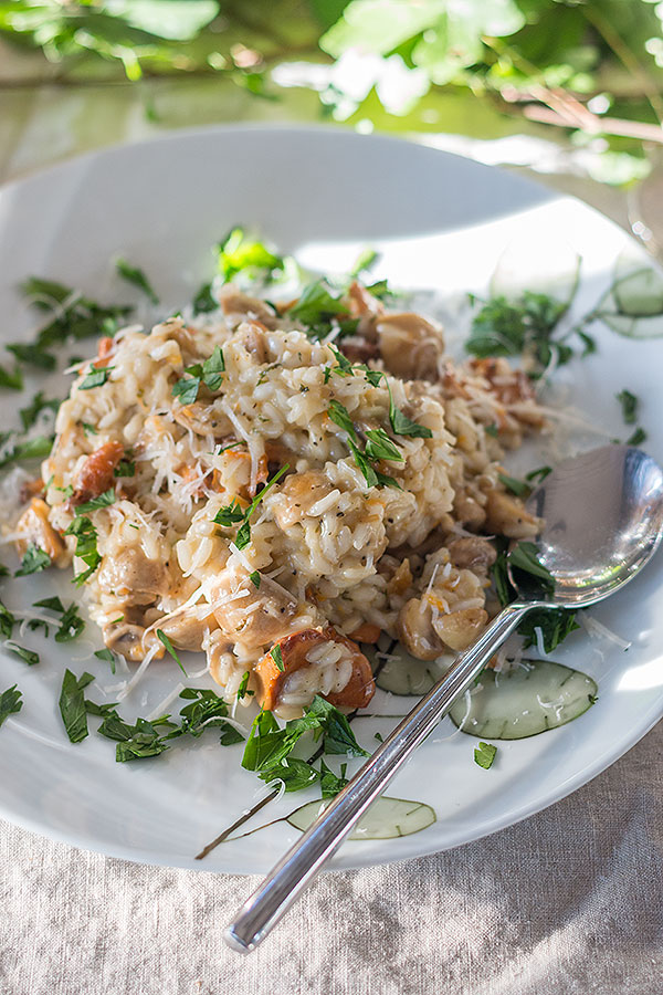 - Pilzrisotto mit Pfifferlingen und Champignons