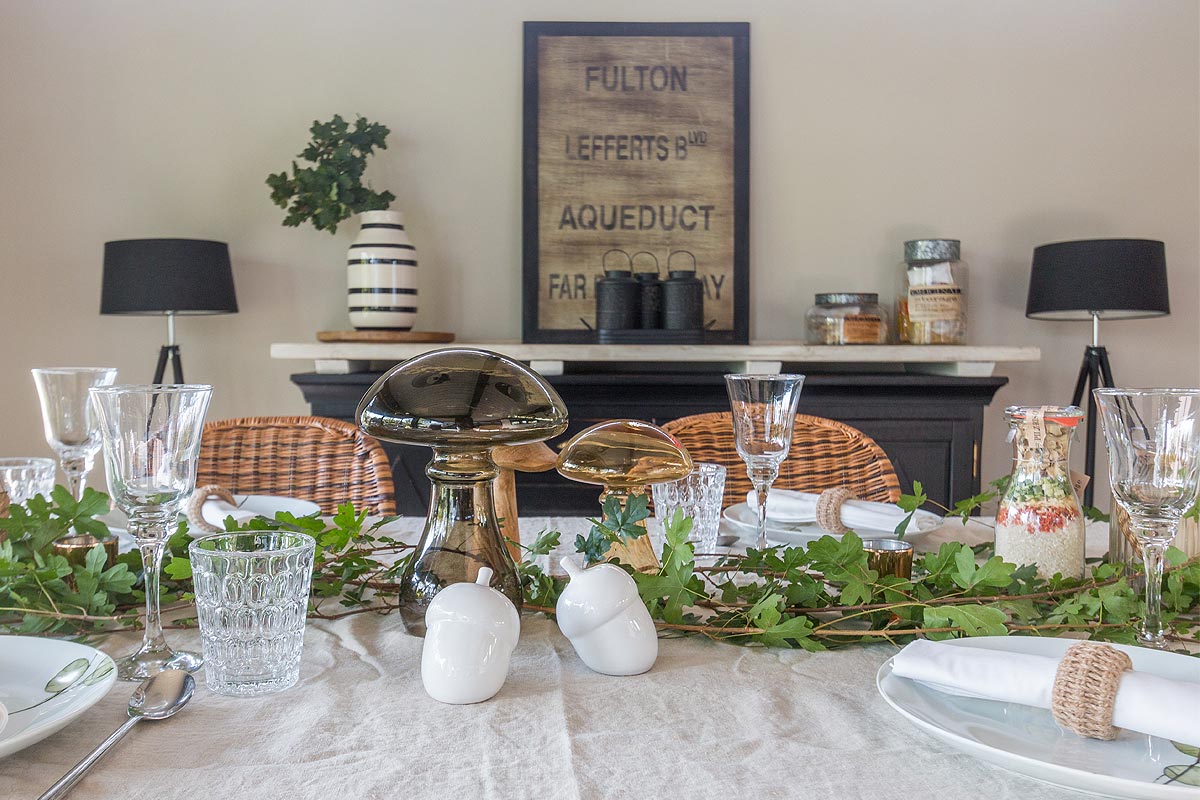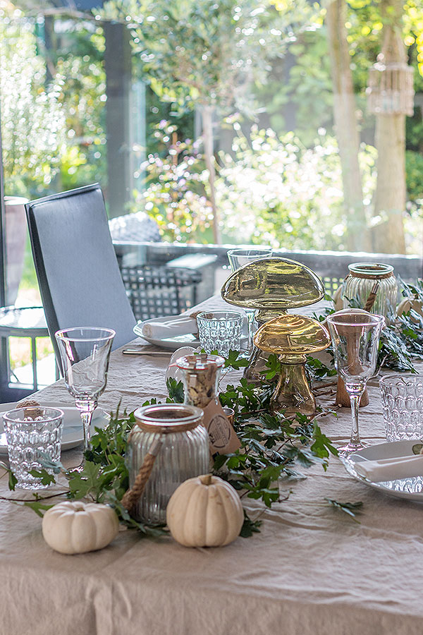 - herbstliche Tischdeko mit Pilzen