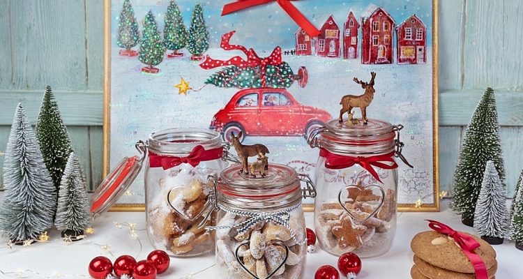 Damit die selbstgebackenen Weihnachtsplätzchen auch lange frisch bleiben, sollten sie in Keksdosen oder Einmachgläsern aufbewahrt werden. Verziert mit einem hübschen Dekoband werden die Keksgläser zu einem dekorativen Hingucker auf dem Küchenregal.