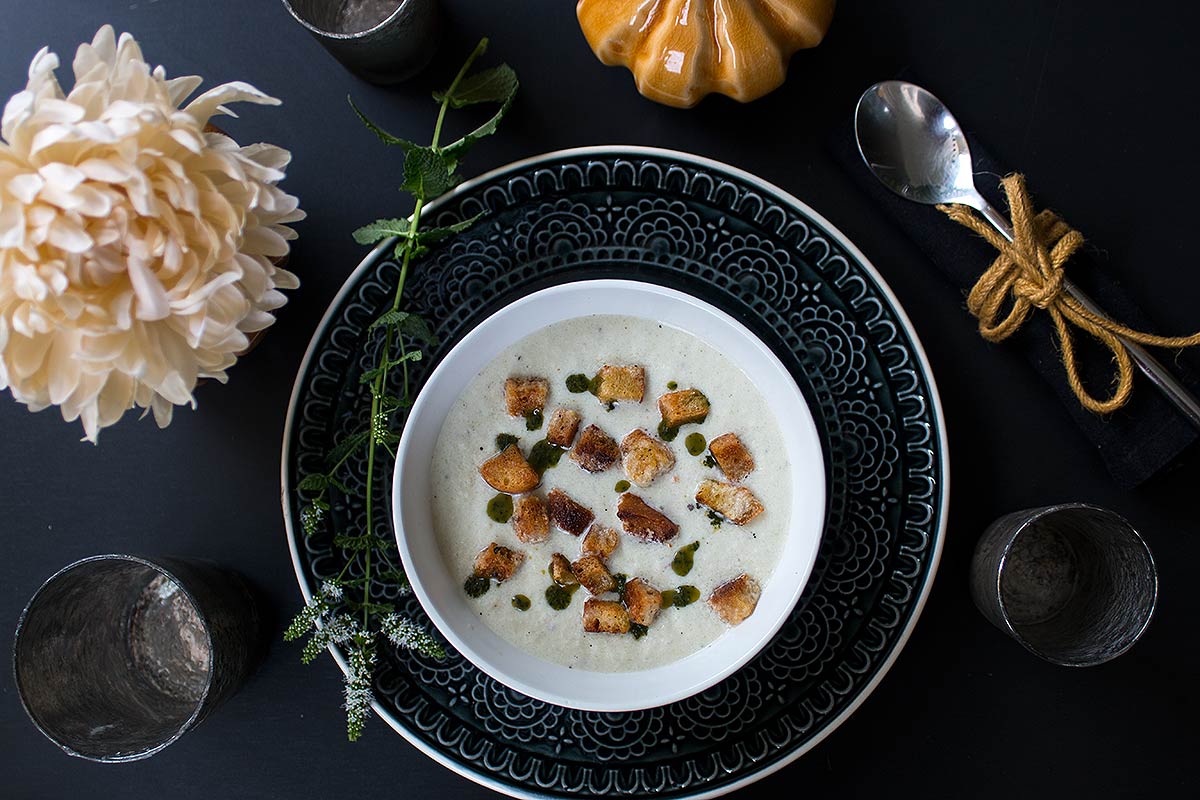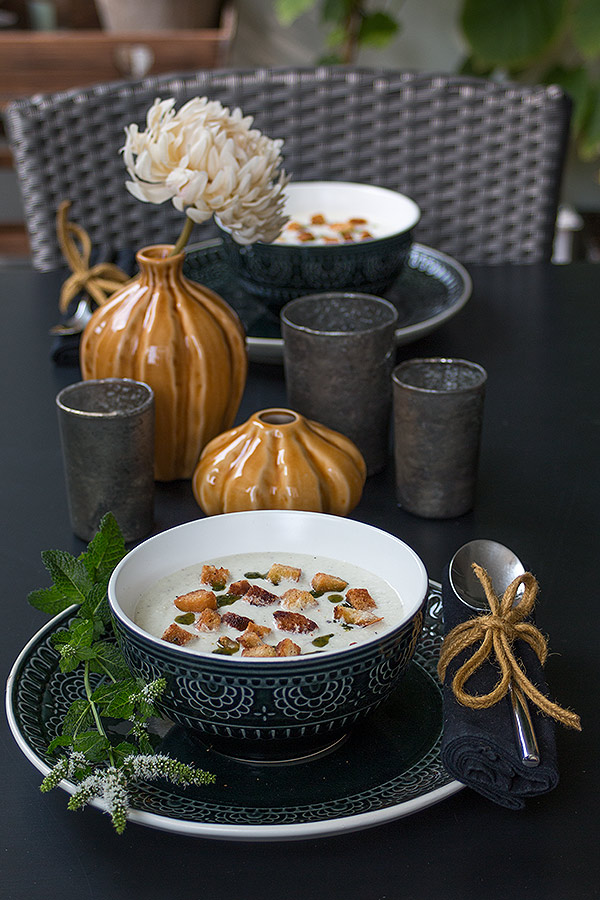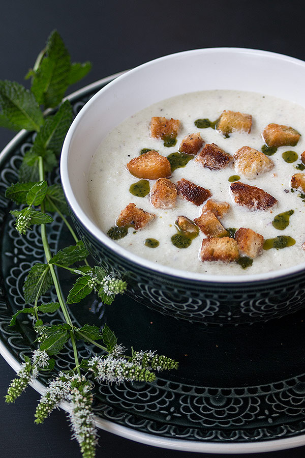 - Gurkensuppe mit Minze und Croûtons