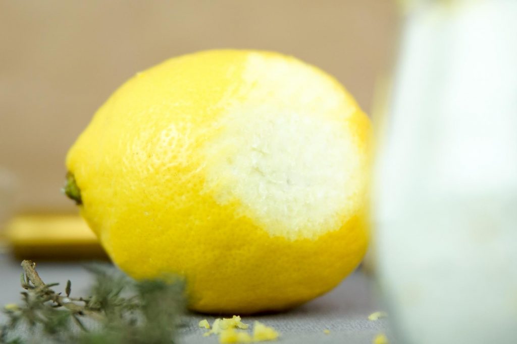 - Reibe vorsichtig die Zitronenhaut ab und fange den Abrieb auf.
