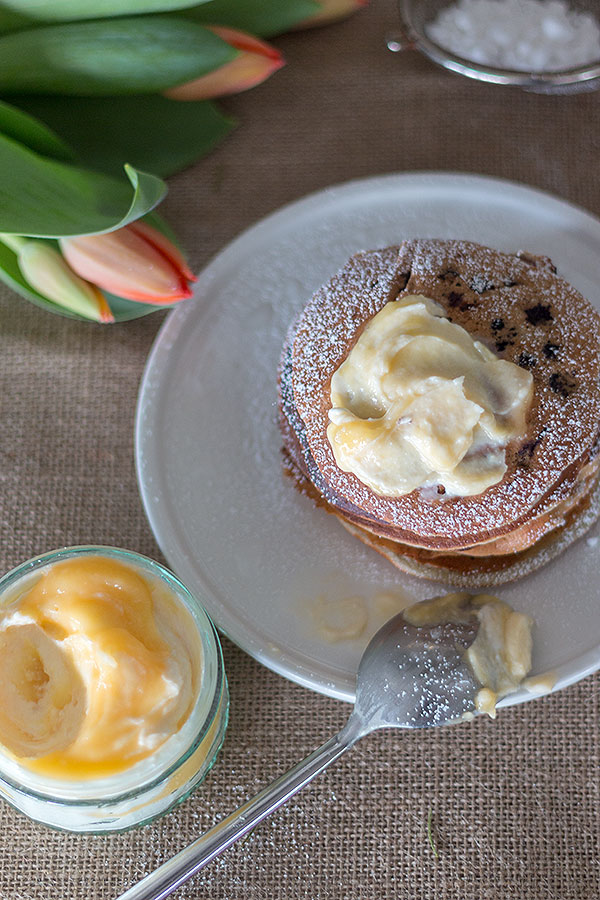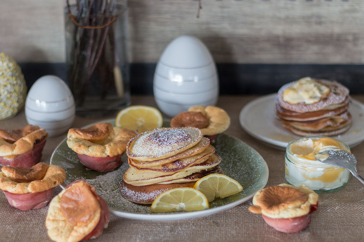 Alle drei Rezepte sind total leicht umzusetzen und meeeegaaaa leeeecker!!! Auch wenn sie natürlich warm am besten schmecken, so war ich überrascht, dass man sie kalt auch noch super kredenzen kann. Wenn ihr euch Arbeit sparen möchtet, könnt ihr das Lemon Curd für die Pancakes kaufen. Ich allerdings empfehle euch, es selbst herzustellen. Auf meinem Blog Stylish Living findet ihr ein Rezept, das ich schon einige Jahre immer wieder verwende. Und ich lieeebeee es!! Damit es zum Osterbrunch nicht in Stress ausartet, könnt ihr das Lemon Curd prima 2 – 3 Tage vorher zubereiten. Es schmeckt auch prima auf frischgebackenen Brötchen mit etwas Quark darunter.