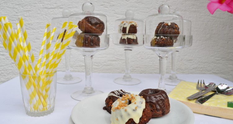 - Die Napfkuchen mit den Kuvertüren und dem Krokant nach Geschmack verzieren und genießen!