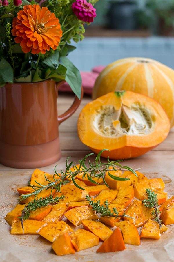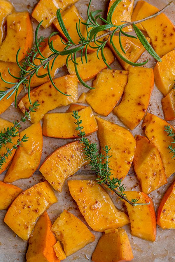 - Ofenkürbis mit Rosmarin und Thymian