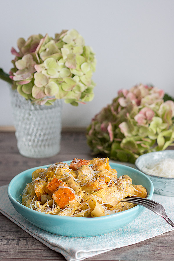 - Pappardelle mit Hokkaido in Champignoncremesauce