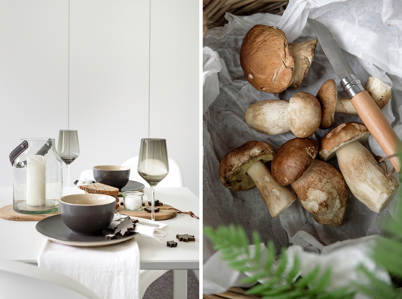 Was gibt es schöneres, als nach einem ausgiebigen Waldspaziergang gemeinsam zu kochen und zu essen. Auch das Auge isst mit und der Tisch kann passend zum Pilzthema eingedeckt werden: