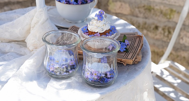 Romantisch gedeckt mit Spitzen-Tischdecke, Blumen aus meinem Garten und bezaubernden Teelichthaltern von DEPOT ist dieser Stecktisch ein hübscher Blickfang in meinem Garten. Hier kann ich meine Seele baumeln lassen, entspannen und ein wenig abschalten vom Alltagsstress.