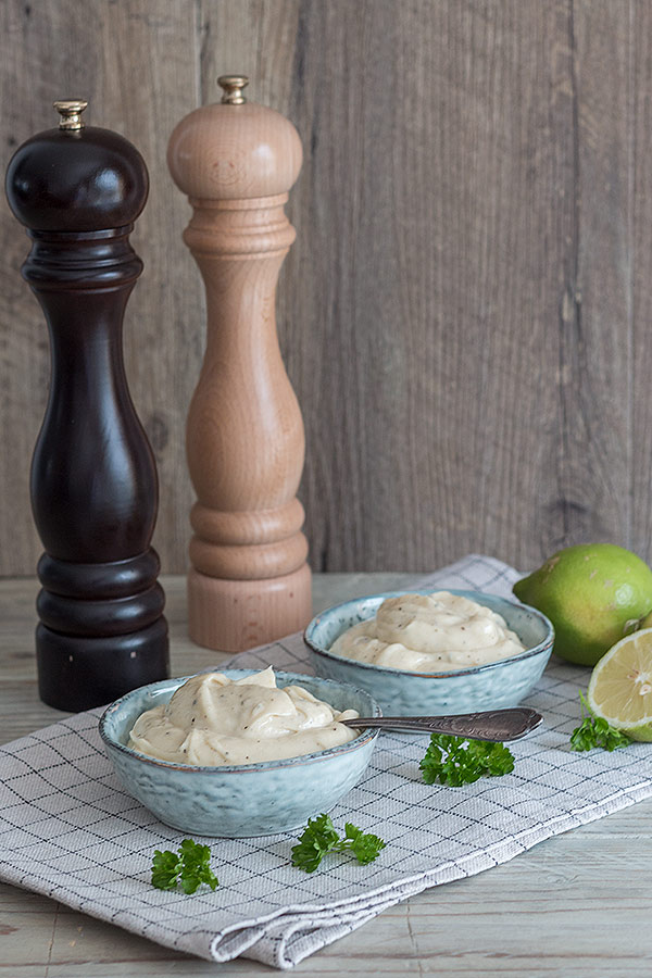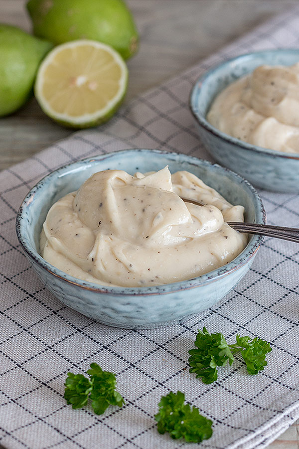 - selbstgemachte Mayonnaise in hübschen Schalen
