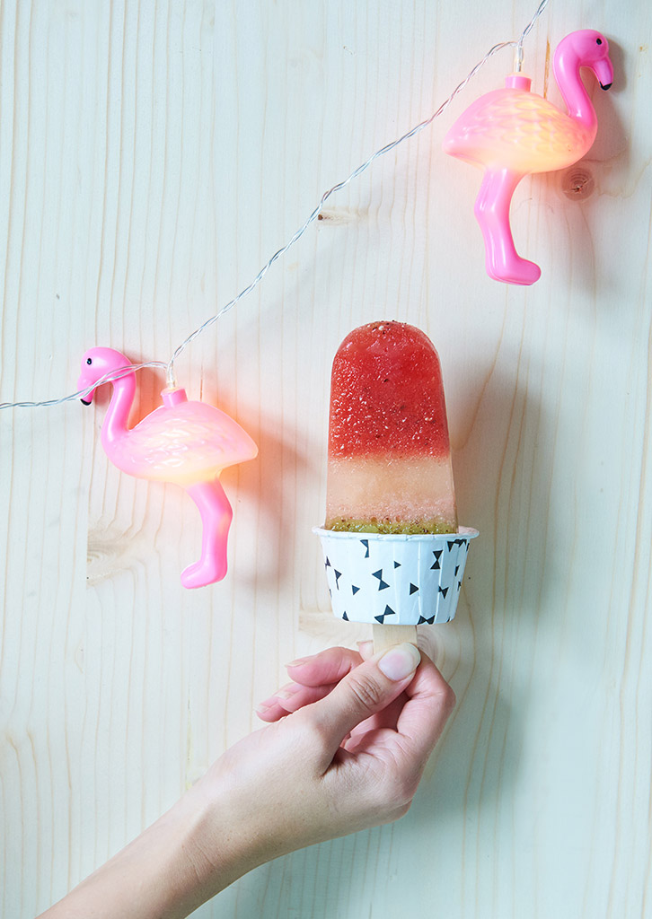 Jetzt nur noch das fertige Eis aus der Form nehmen und die Muffinförmchen auf den Stiel stecken. Das Eis hängt in der Form fest? Macht nichts, halte die Formen einmal unter warmes Wasser und schwupp kommt dein Eis heraus.