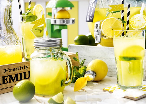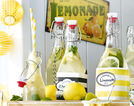 Das Thermometer klettert in die Höhe, Ihr braucht eine schnelle Erfrischung und wollt nicht nur Wasser trinken? Ihr seid auf der Suche nach einer netten Idee für eine Erfrischung für eine Sommerparty? Dann pimpt Euer Wasser doch ganz einfach mit Zitrusfrüchten auf. Zunächst die Früchte entsaften, den Saft mit Wasser (je nach Bedarf) mischen und einige Scheiben der Zitrusfrüchte zum Anrichten hinzugeben. Falls Eure Limonade zu sauer sein sollte, fügt ein wenig Zucker hinzu (oder flüssigen Süßstoff). Zum echten Hingucker wird die Limo in Bügelverschlussflaschen oder Trinkgläsern mit Papierstrohhalm.