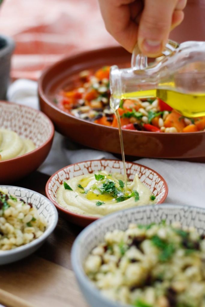 Besonders marrokanisch wirken der Bugur und das Baba Ganoush in verschieden große Dipschalen. Lasst euch verzubern!