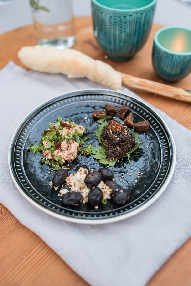 Alle Zutaten miteinander im Mixer pürieren. Eventuell noch etwas Balsamico-Essig zugeben, sodass die Tapenade leicht süß-sauer schmeckt.