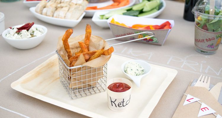 Wir haben die gleich einmal getestet und den gefühlt einzig schönen Tag der letzten Woche genutzt, um mit unseren Veggie-BBQ-Lieblingen wie Süßkartoffel-Pommes, knackigen Salat, Maiskolben und knusprigen Brot sowie einer tollen Tischdeko den Gartentisch und Grill saisonstart-fähig zu machen.