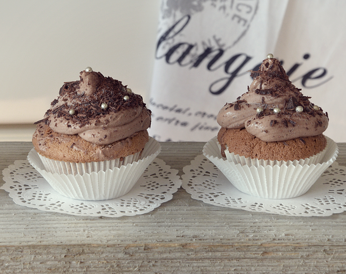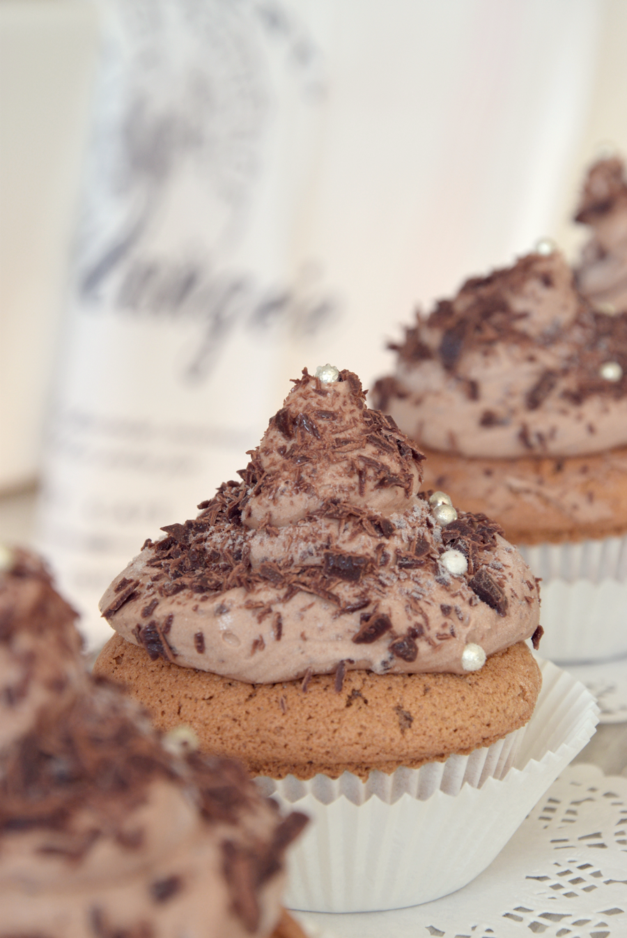 Mascarpone, Zucker, Nutella und Kakao glatt rühren. Die Creme in einen Spritzbeutel füllen. Je nach Belieben die Cupcakes verzieren. Ich habe Schokoraspeln und ein paar silberne Zuckerperlen verwendet.