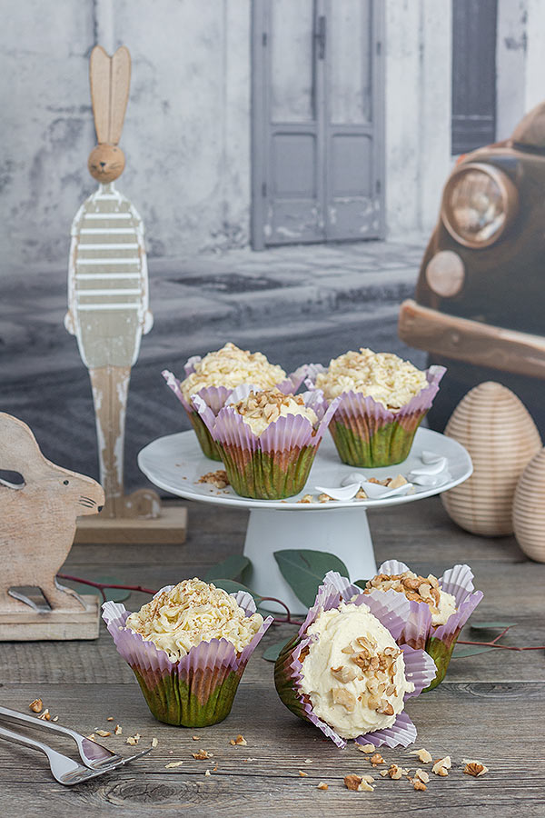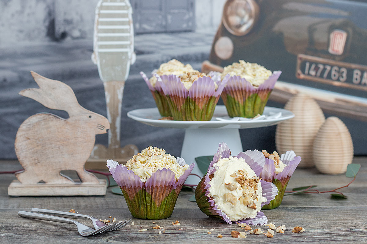 - Karottenkuchen Cupcakes mit Frosting