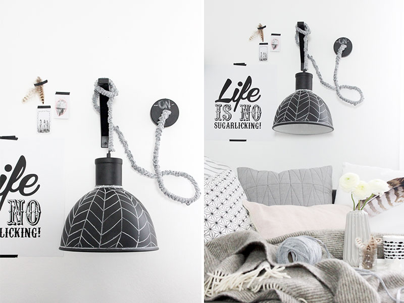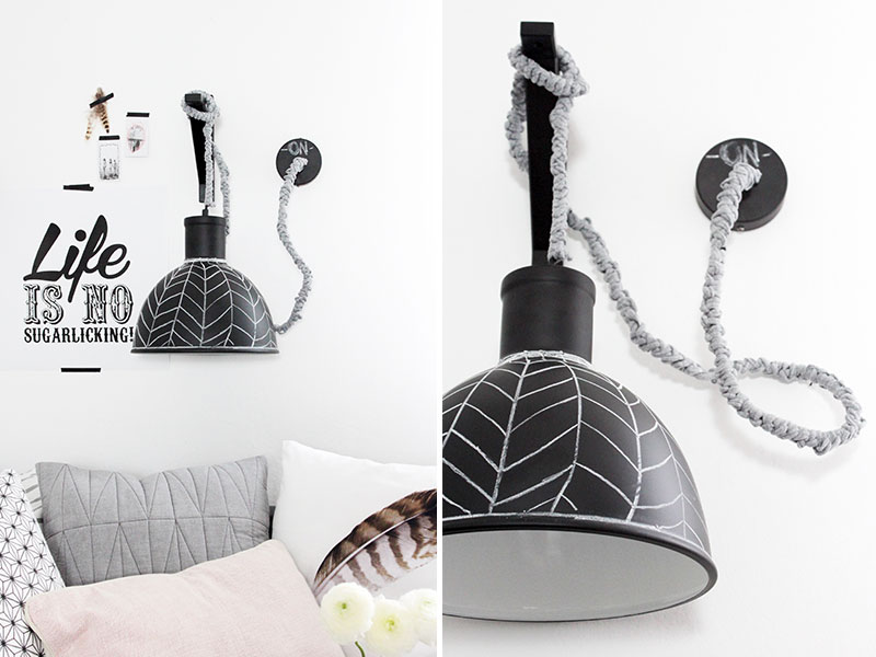 - Als Highlight die Lampe noch mit Kreide verzieren. Fertig ist eine individuelle DIY Wandlampe.