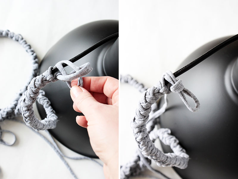 - Die Lampe mit dem umhäkelten Kabel locker um den Regalkonsole wickeln und von einem Fachmann anschließen lassen.