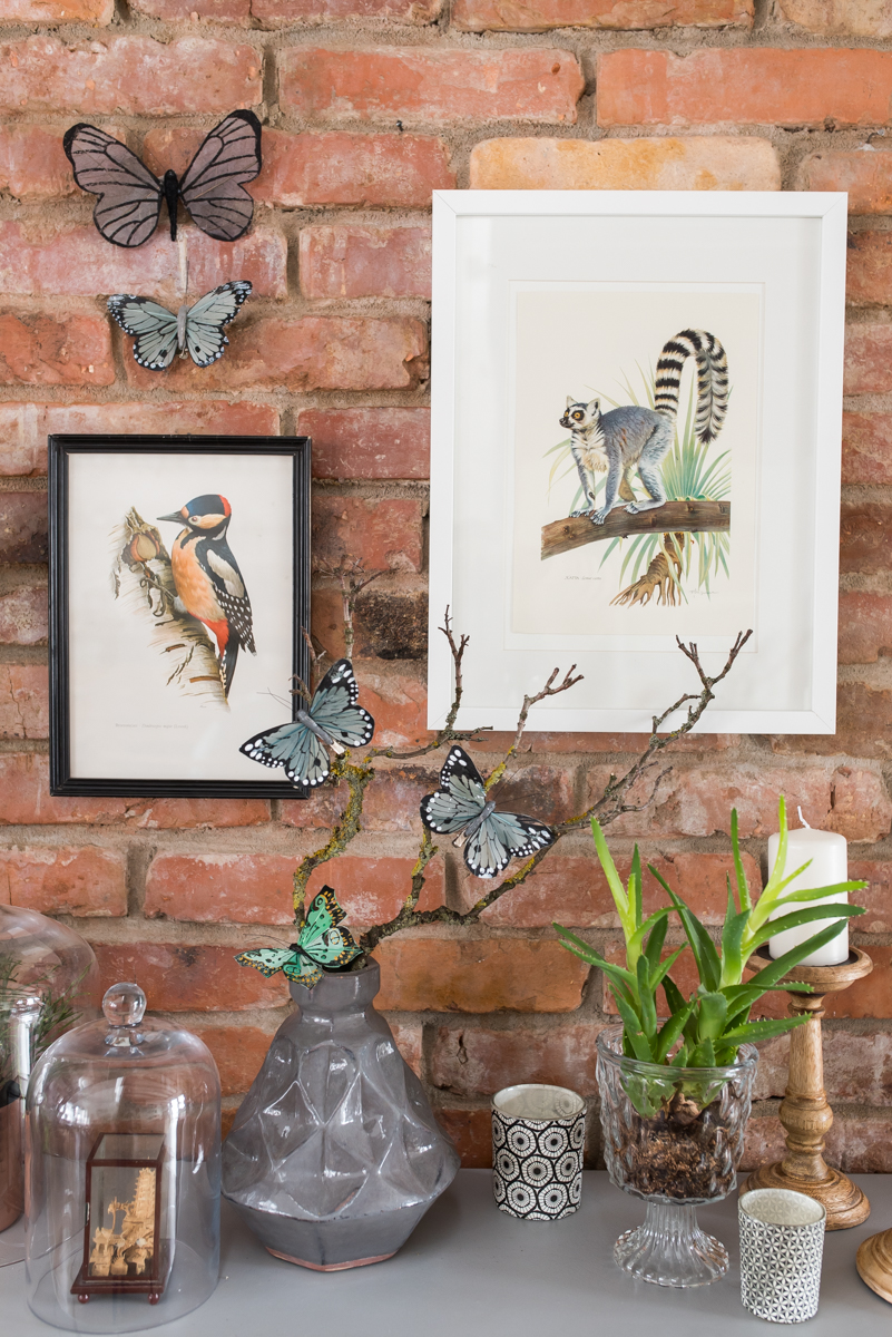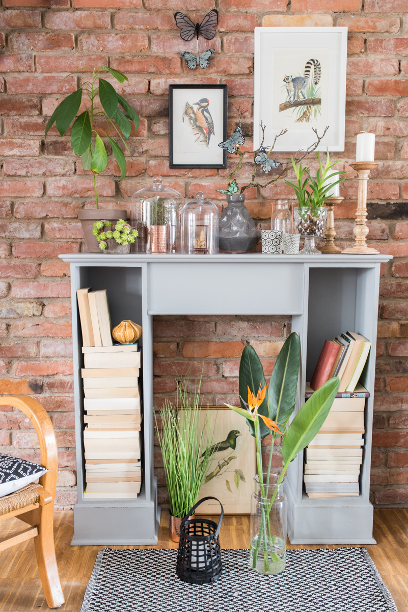 Dieses Jahr steht der Botanik Look hoch im Kurs und damit ziehen jede Menge exotische Pflanzen sowie Pflanzen- und Tiergrafiken bei uns ein. Da zu mir der vintage Stil am besten passt, habe ich bei meiner Deko an ein Naturkundemuseum gedacht und meine Kaminkonsole von DEPOT als Bücherregal dekoriert, weil die Fächer an den Seiten super Stauraum bieten!