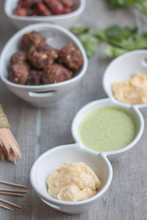 In Spanien sind Tapas eigentlich nur kostenlose Beilagen zum Getränk und jede Tapas-Bar bietet eine individuelle Auswahl an verschiedenen Tapas. Diese werden dort sogar meistens im Stehen verzehrt. Mittlerweile sind Tapas allerdings so beliebt, dass auch hier in Deutschland an jeder Ecke Tapas-Bars aus dem Erdboden sprießen und nunmehr eher die kleinen Häppchen anstatt des Getränkes im Vordergrund stehen. Kein Wunder, bei der Vielzahl an Variationsmöglichkeiten. Für euch habe ich heute eine kleine Auswahl an Tapas zusammengestellt, die zu meinen liebsten zählen. Dazu gehören Pflaumen im Speckmantel, Hackfleischbällchen mit Schafskäse gefüllt, Runzelkartoffeln mit Mojo Verde, Ziegenkäse im Schinkenmantel, eine bunte Mischung Oliven, gefüllte Pepperoni und natürlich frisches Brot und selbstgemachte Aioli! Ohne Aioli findet kein Tapas-Abend statt. Und damit ihr diese ganz leicht selber machen könnt, habe ich euch heute das Rezept dafür mitgebracht.