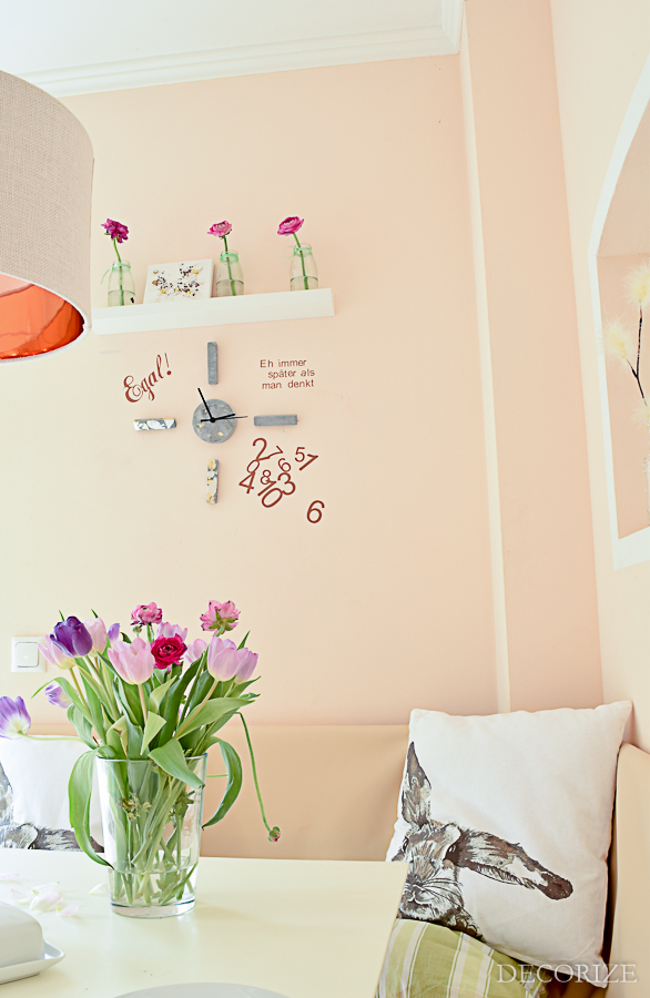 Ist es wirklich schon so spät? Ja, und wie spät eigentlich? Dieses Spiel spielen wir fast jeden Morgen von Montag bis Freitag. Denn in unserer Küche hing bis vor Kurzem keine richtige Uhr. Also keine so eine richtige, nur die kleinen digitalen Mini-Dinger am Backofen und Mikrowelle, und das sind definitiv zu viele verwirrende, flimmernde Zahlen für kleine müde Kinderaugen an einem Montag-Morgen.