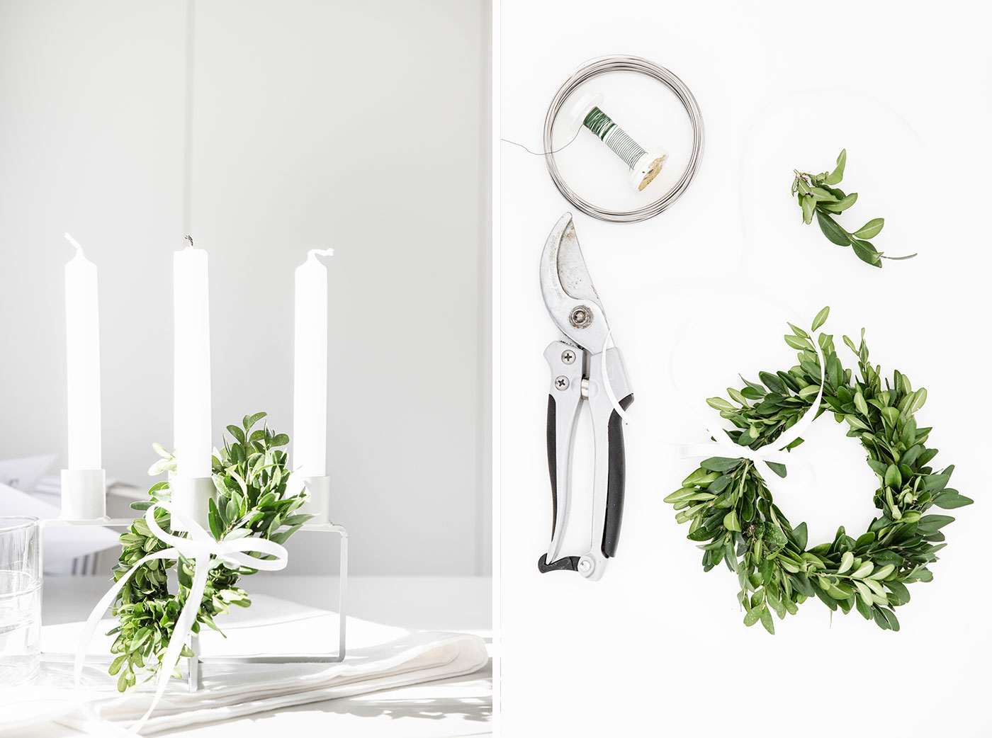 3. Adventskranz selber machen – binde einen Adventskranz aus Buchsbaum