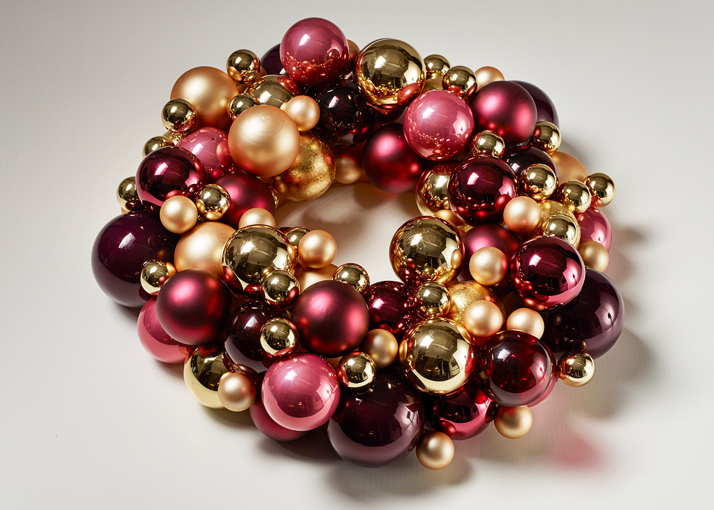 wir haben bei dem Kranz 80 Weihnachtskugeln in unterschiedlichen Größen verarbeitet.