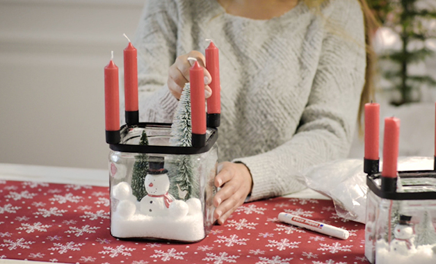 Last but not least: Mit einem Kreidestift könnt ihr eine Botschaft eurer Wahl auf das Glas schreiben. So erhält der Adventkranz eure ganz persönliche Note.