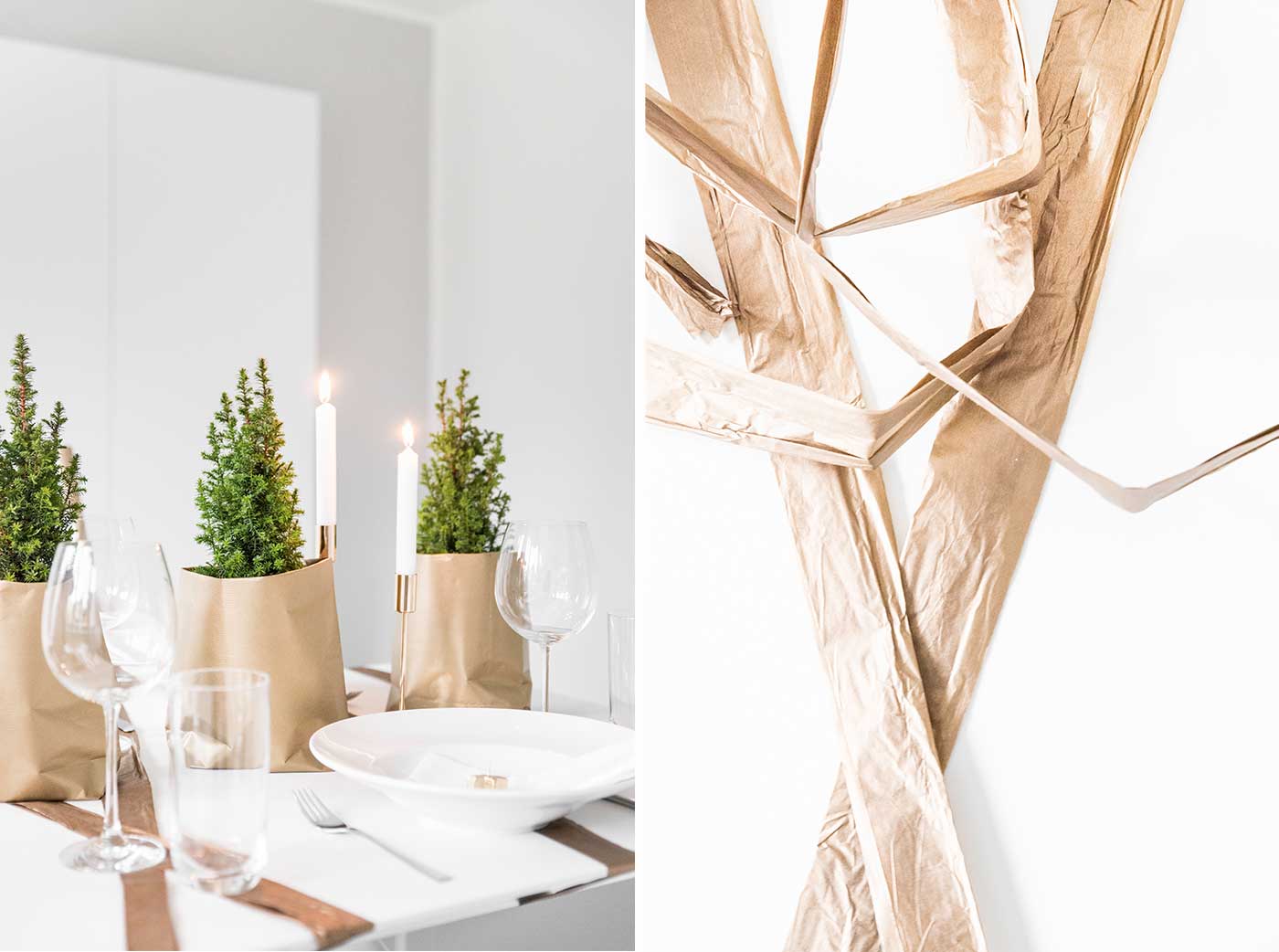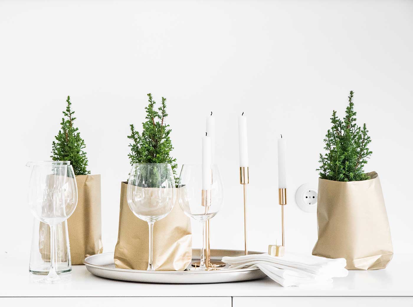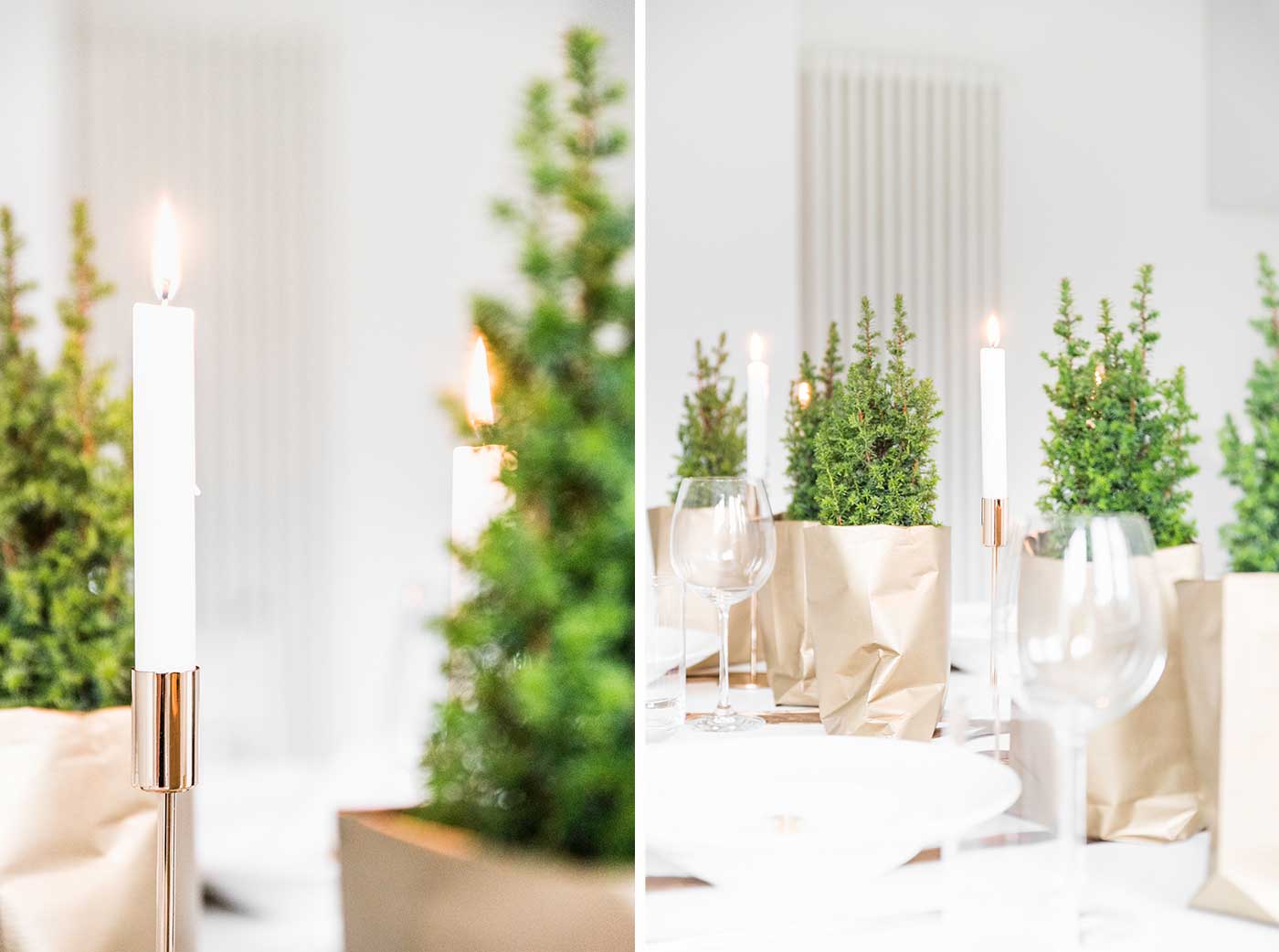 Lichterglanz, Tannenbäume und ein bisschen Gold für die weihnachtliche Tischdeko
