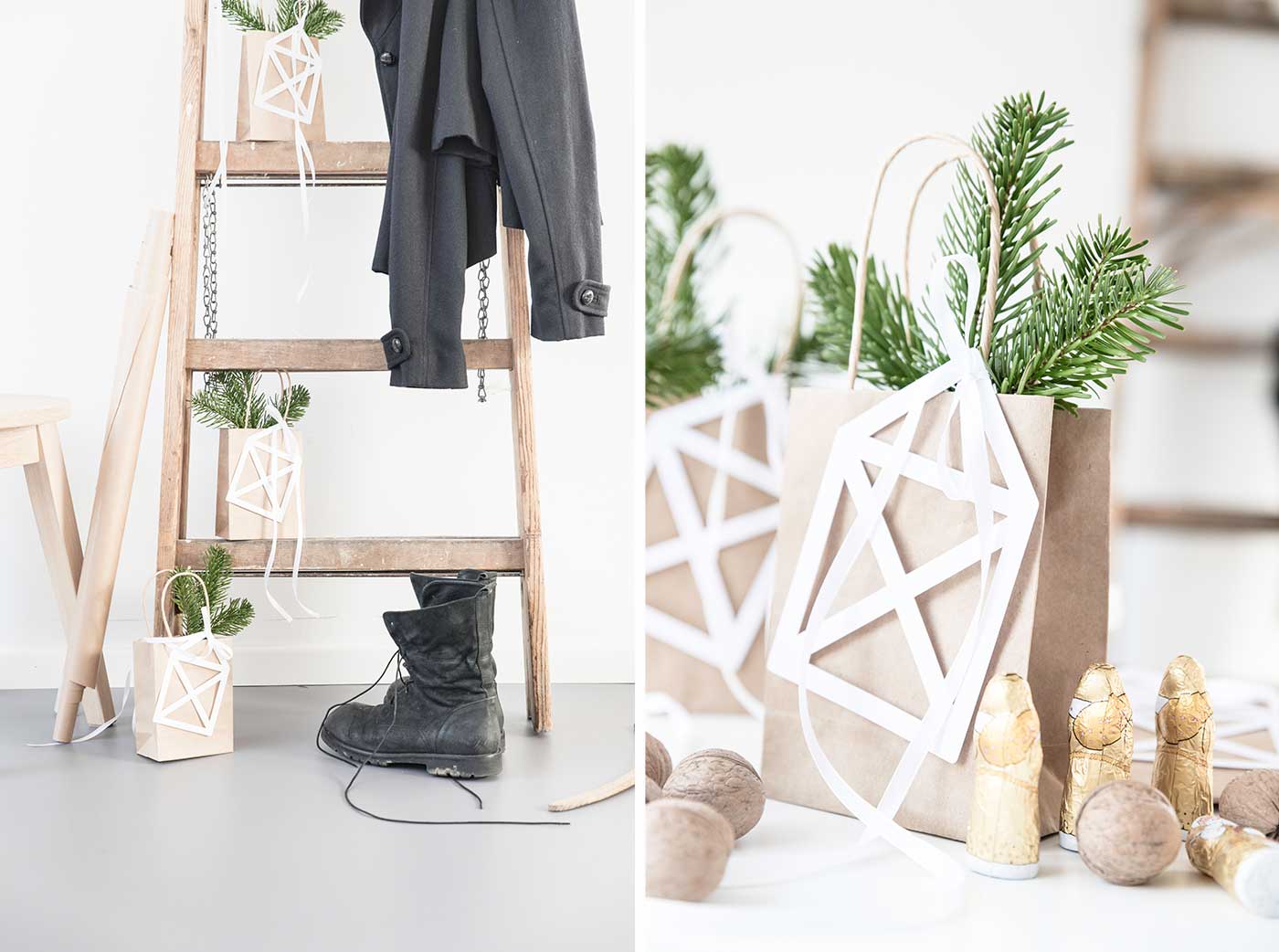 Am 6. Dezember ist Nikolaus, die Kinder putzen am Vorabend ihre Stiefel und stellen sie vor die Tür, damit ganz traditionell, der Nikolaus seine Geschenke in die Schuhe legen kann. Es gibt aber auch andere Lösungen. Ich habe Geschenktüten von DEPOT passend zum Nikolaustag verziert und mit Leckereien gefüllt. So dürfen die „Nikolausstiefel“ schmutzig bleiben und die ein oder andere selbstgemachte Nikolaustüte kann kurzerhand mit dem Henkel, heimlich an die Tür unserer Lieben gehängt werden. Papphäuser zum Befüllen passen ebenfalls als Geschenkidee zu Nikolaus, aber schaut selbst!