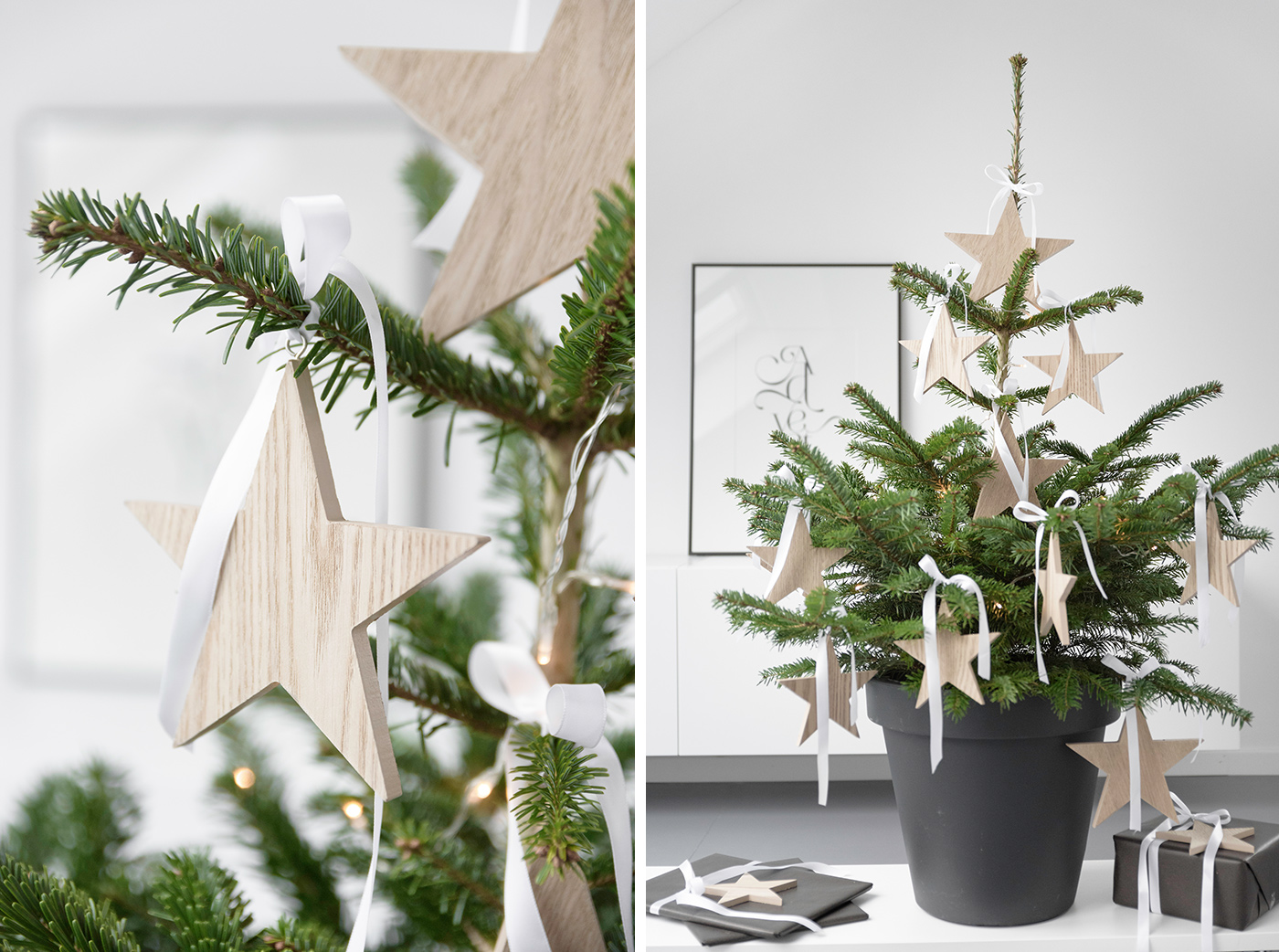 Freut ihr euch auch so sehr auf den 24. Dezember? Ich liebe den „Heiligen Abend“ und die Vorbereitungen für das Fest. Meine Weihnachtsdekoration fällt wie jedes Jahr sehr schlicht aus. Was allerdings auf keinen Fall fehlen darf, ist ein Weihnachtsbaum, der am Vorabend von mir geschmückt wird. Dieses Jahr habe ich mich für Holzsterne entschieden, ich mag natürlichen Baumschmuck besonders gern. Passend dazu werden die Geschenke verpackt, da bin ich eigen. Mein Motto lautet, nicht zu viel und nicht zu wenig. Ich halte es da wie die Schweden: ganz Lagom!