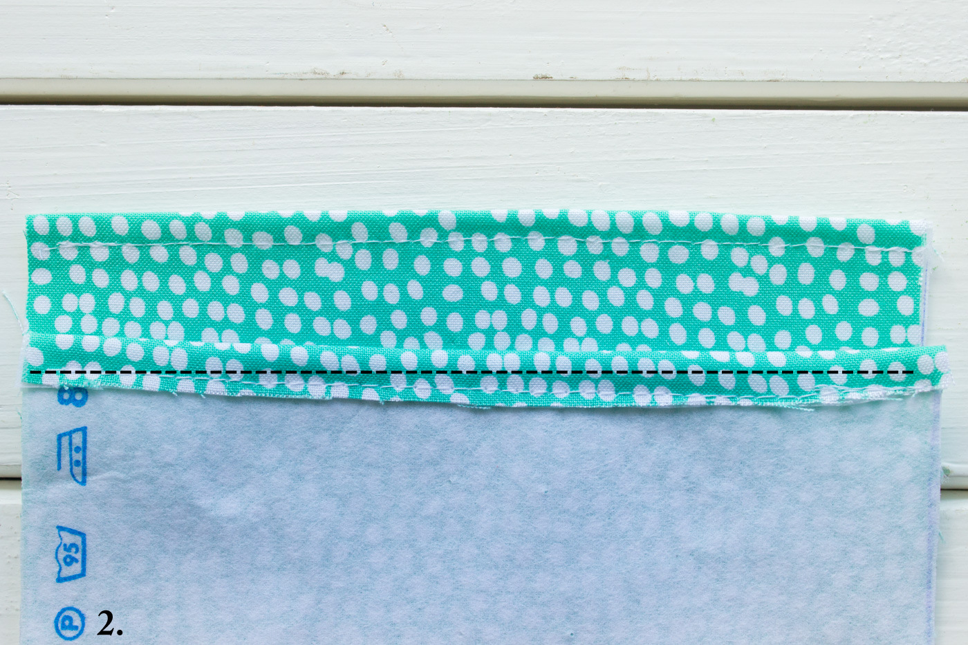 Schritt 2: Nun werden verstärkend die Vliesstiefel jeweils auf die linke Seite der Stoffstiefel gebügelt. Jetzt faltet Ihr die obere Kante einmal um und näht sie mit dem Geradstich fest.
