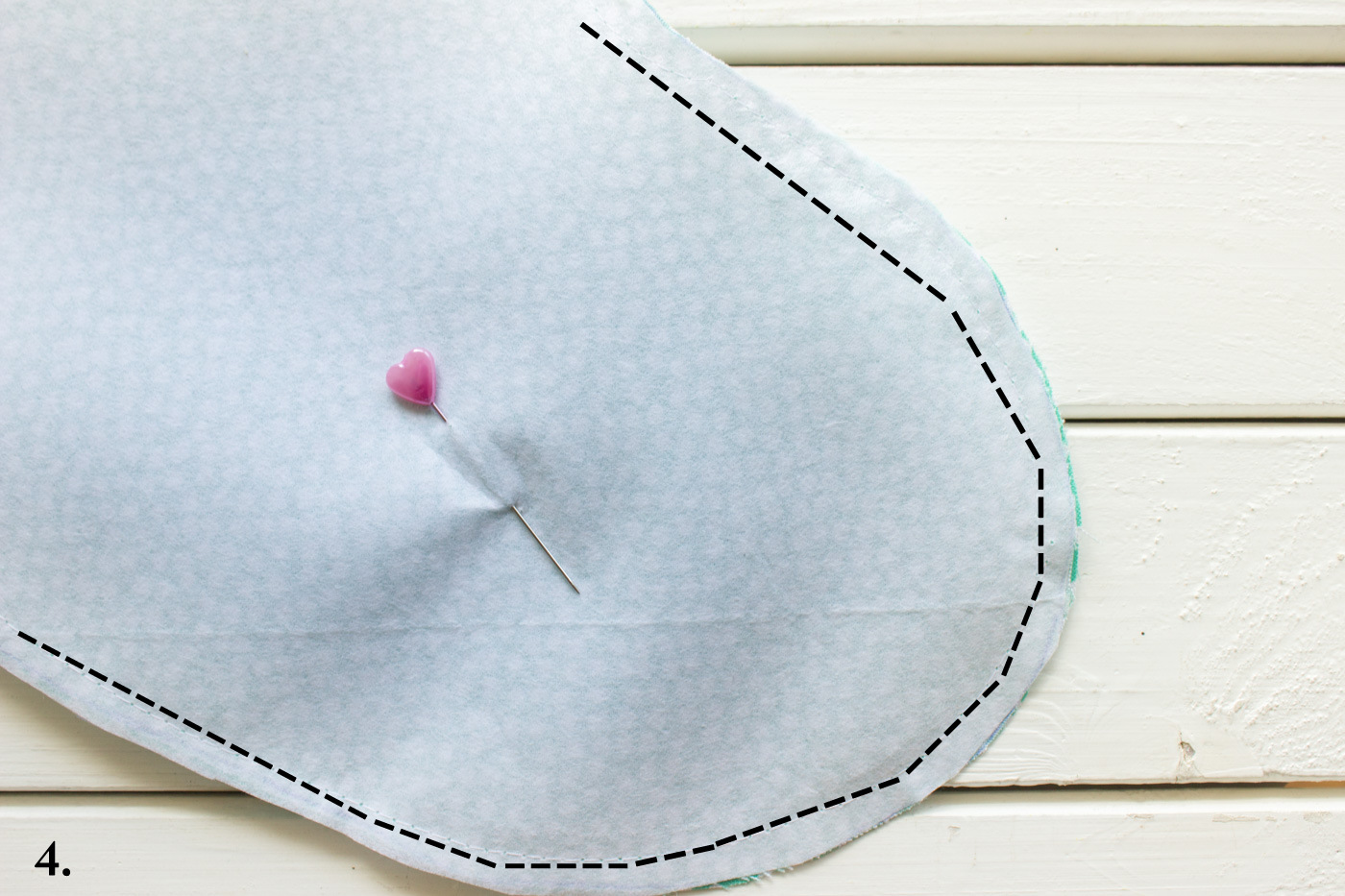 Schritt 4: Nun näht Ihr einmal am Rand entlang mit dem Geradstich. Lasst aber oben offen! Anschließend wendet Ihr den Stiefel.