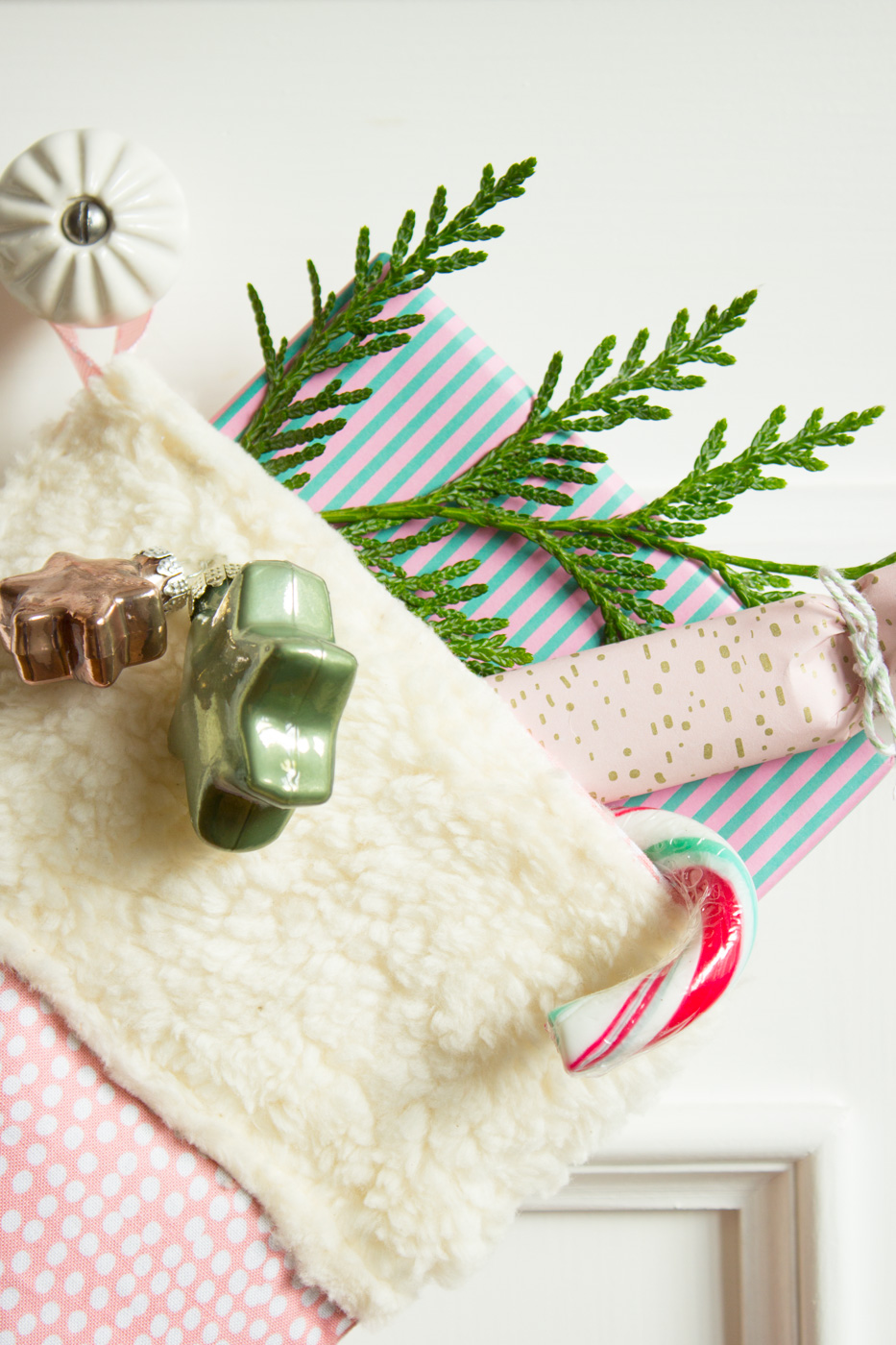 Tipp: Ich habe noch mit ein paar Stichen kleine Weihnachtssterne an den Stiefel genäht. Besonders gut würden sich auch Kugeln, eine Schleife oder vieles mehr zur Verzierung machen.