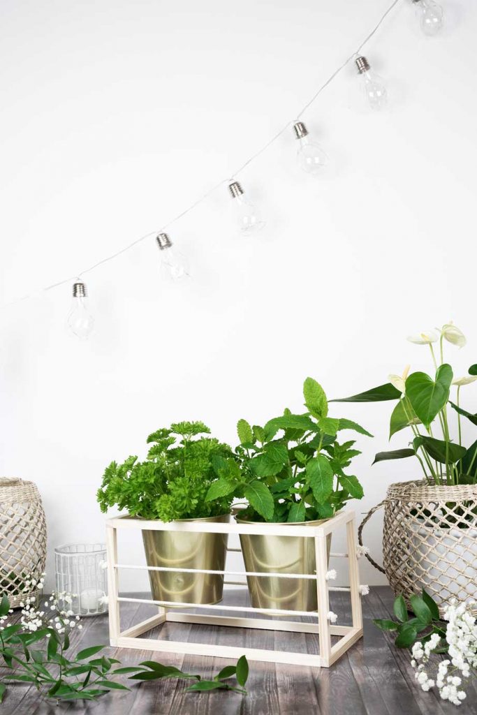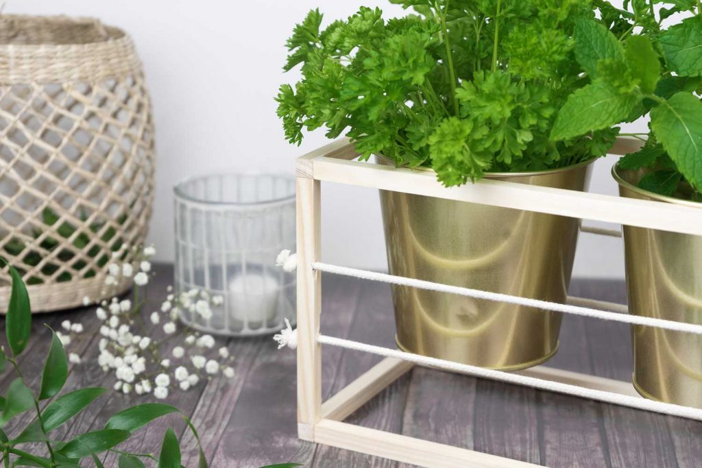 Doch natürlich wollen Basilikum, Petersilie und Co. auch richtig präsentiert werden, denn das Auge isst ja bekanntlich mit. Mit etwas Holz und Seil lässt sich in wenigen Schritten ein kleiner, idyllischer Garten basteln, der nicht nur lecker schmeckt, sondern auch noch richtig schön aussieht. Das Gestell der filigranen Konstruktion ist dabei wunderbar leicht und zurückhaltend und fügt sich dank seiner Schlichtheit in jeden Wohnstil ein.