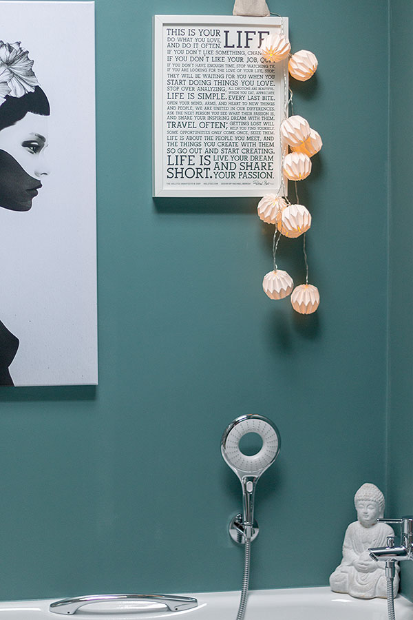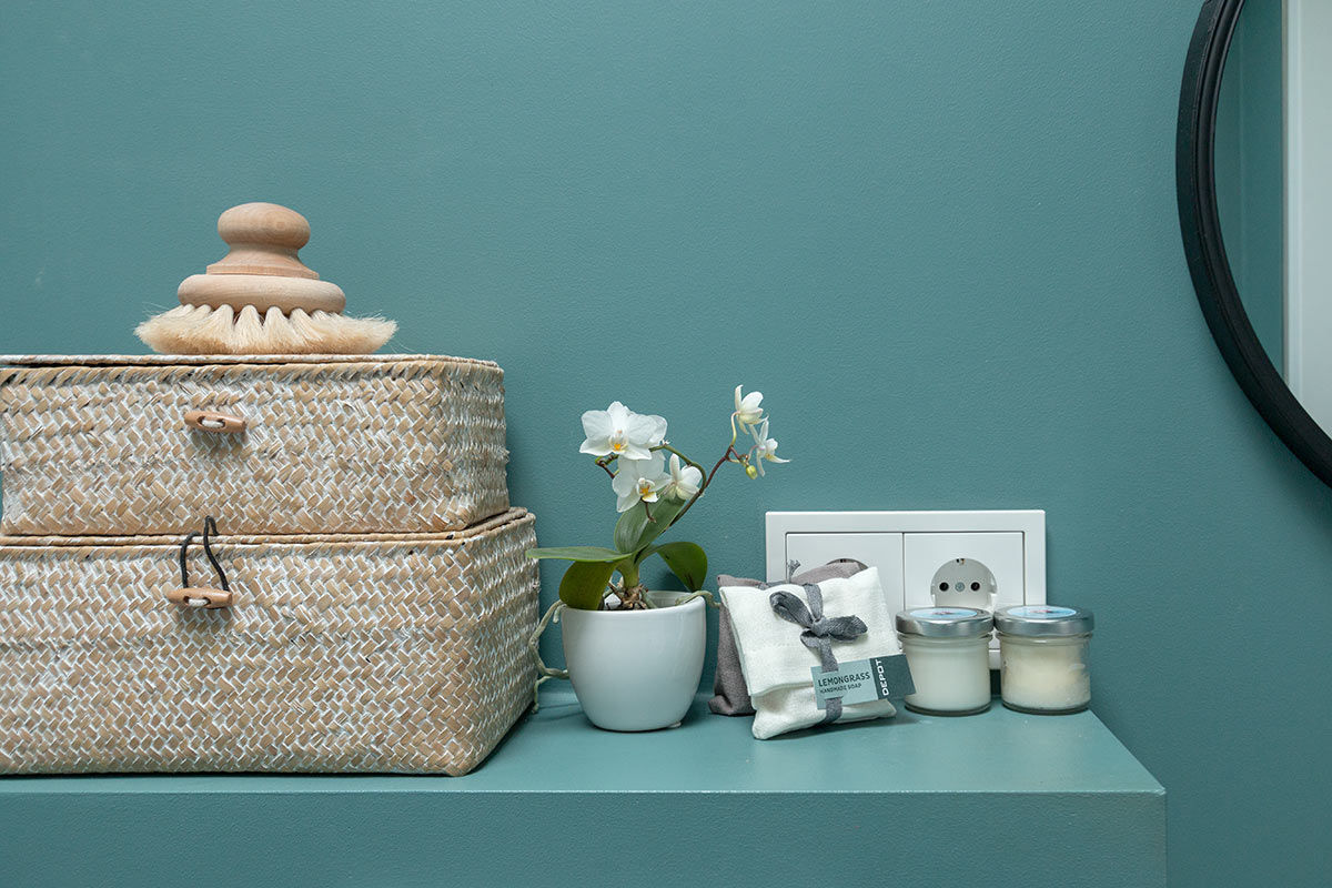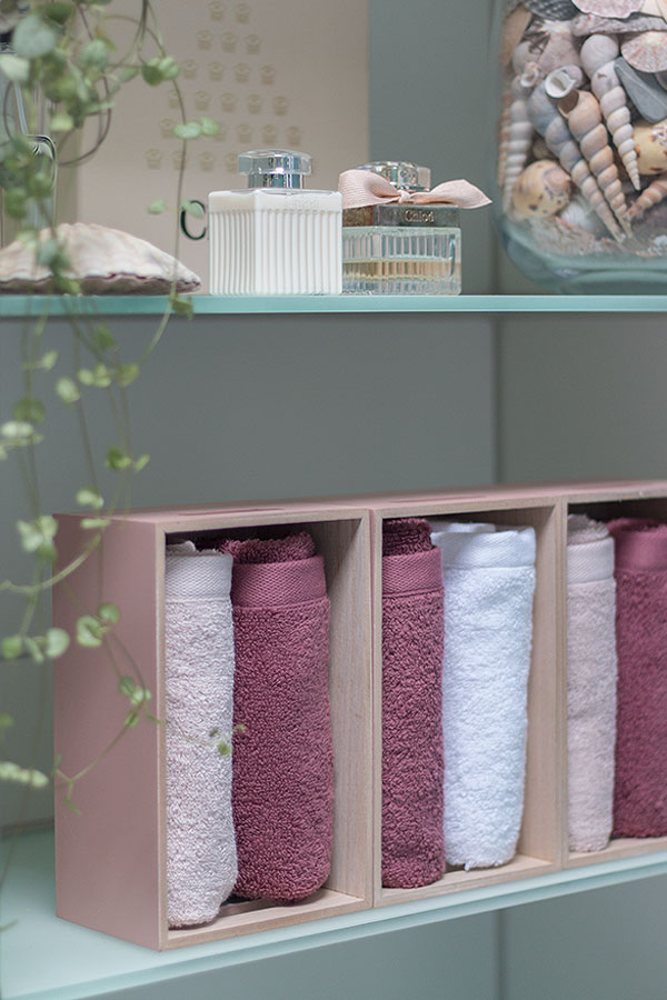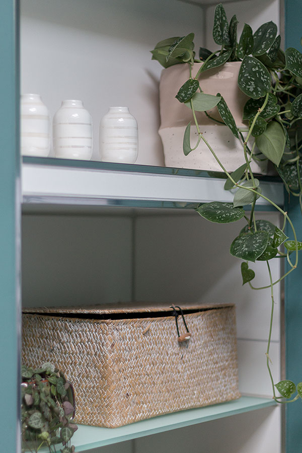 Wenn euer Badezimmer nun in neuem Glanz erstrahlt, geht es ans Dekorieren. Ich habe mir schon lange angewöhnt, alle Kosmetikprodukte in Schränken oder Kisten mit Deckeln zu verstauen. So können sie nicht einstauben, ihr müsst weniger saubermachen und außerdem habt ihr ein schön aufgeräumtes Bad. Und wohlgemerkt mehr Platz für schöne Dinge wie Pflanzen, Raumdüfte, Gästehandtücher, Seifen und Deko.