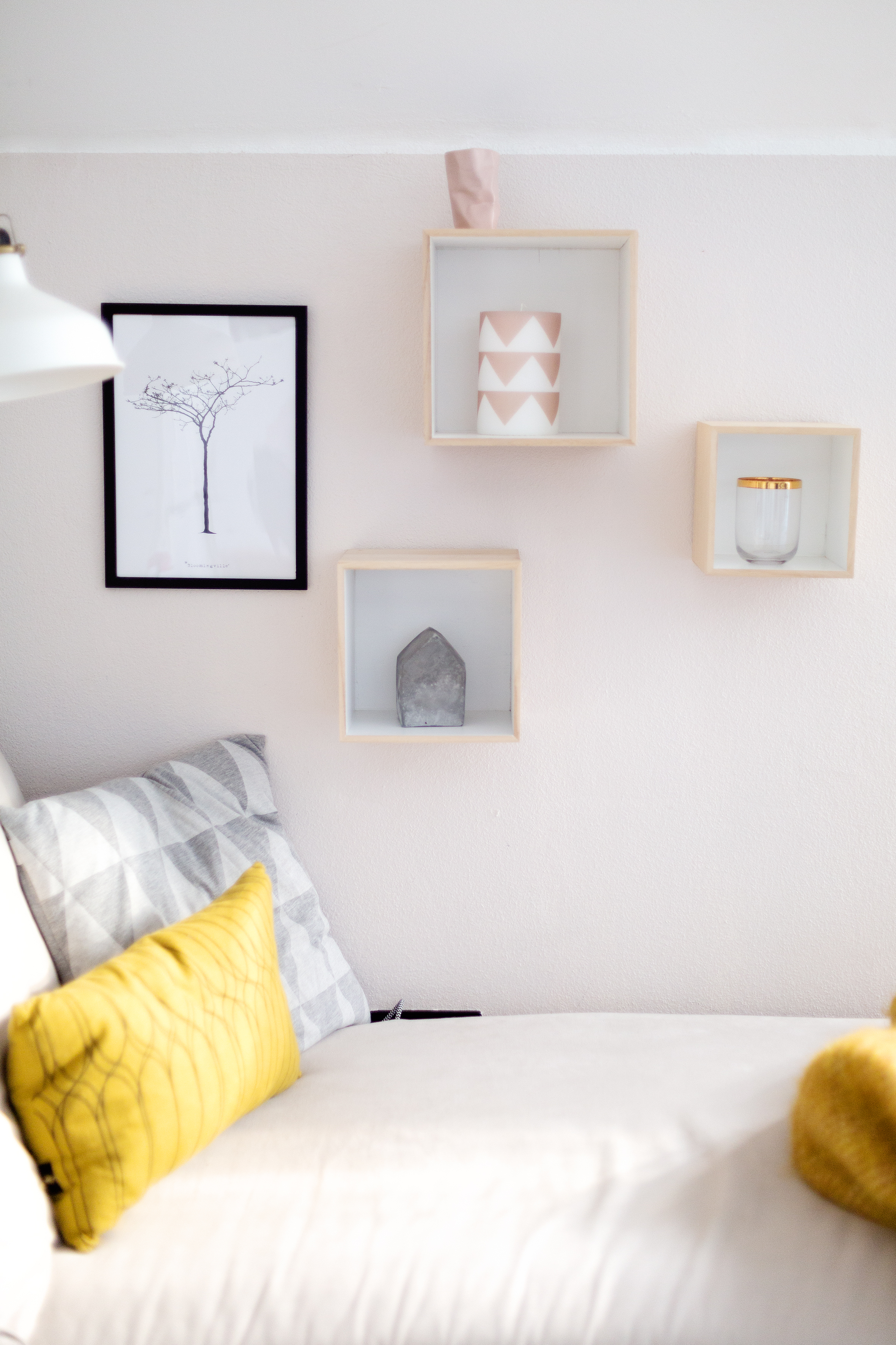 Melanie: Ganz klar mit Holz und Stoffen. Vor ca einem Jahr entdeckte ich außerdem Metall für mich und mein Zuhause. Überall sind einzelne Elemente in Gold und Kupfer zu sehen. Diese Materialien sorgen neben dem Holz für Wärme und eine Prise Glamour.