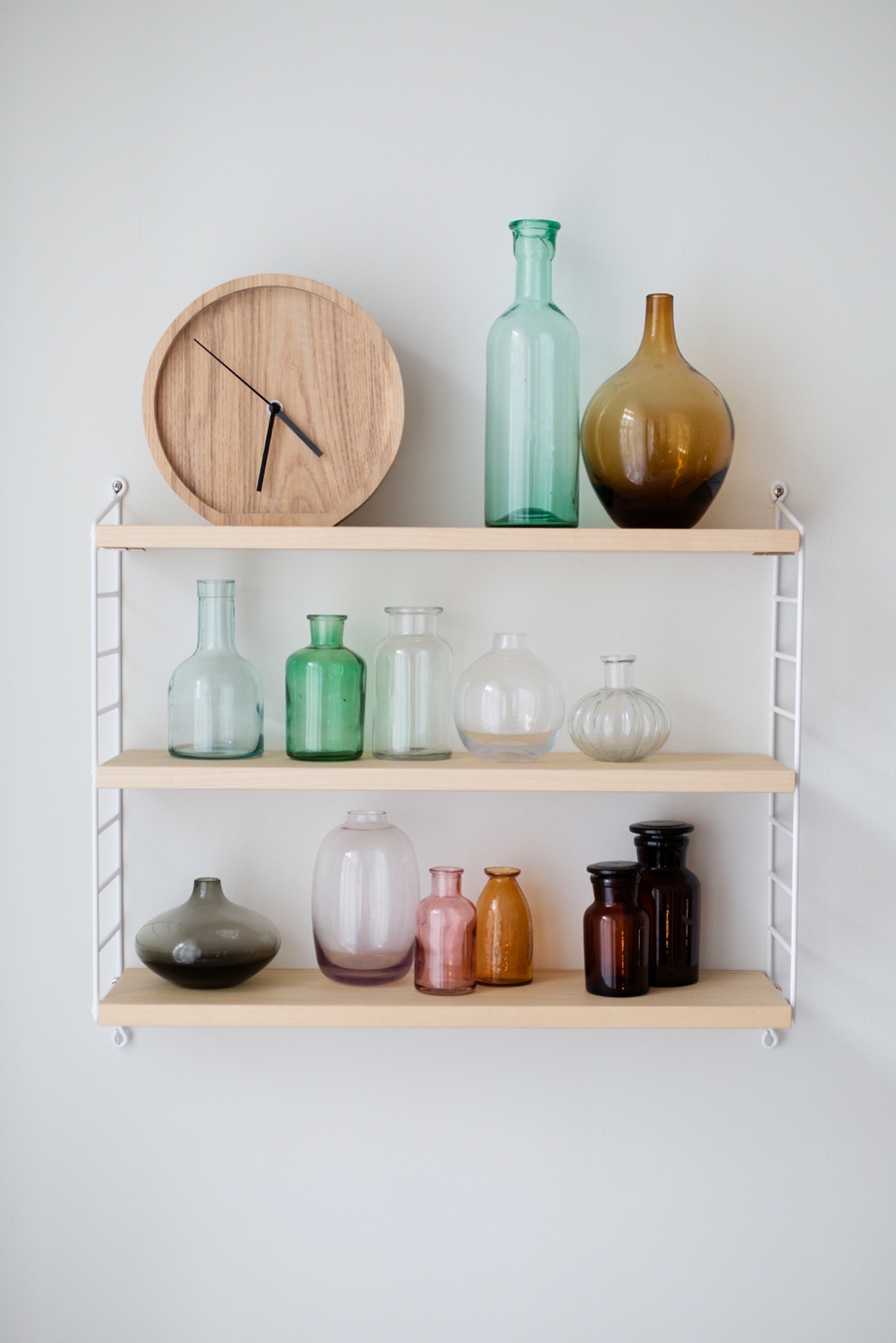 Vom Arbeitsplatz geht es ins Wohnzimmer, welches sehr hell und freundlich gestaltet wurde. Eine beiges Sofa, helle Kissen und eine hellbeige Wandfarbe sorgen für Freundlichkeit und Wärme. Hinter dem Sofa steht ein Sideboard, darüber habe ich mein Wandregal, welches die Vasensammlung perfekt präsentiert, montiert. Viele der Vasen sind von DEPOT, immer wenn ich in einem der Shops bin, findet eine Vase den Weg in mein Einkaufskörbchen.