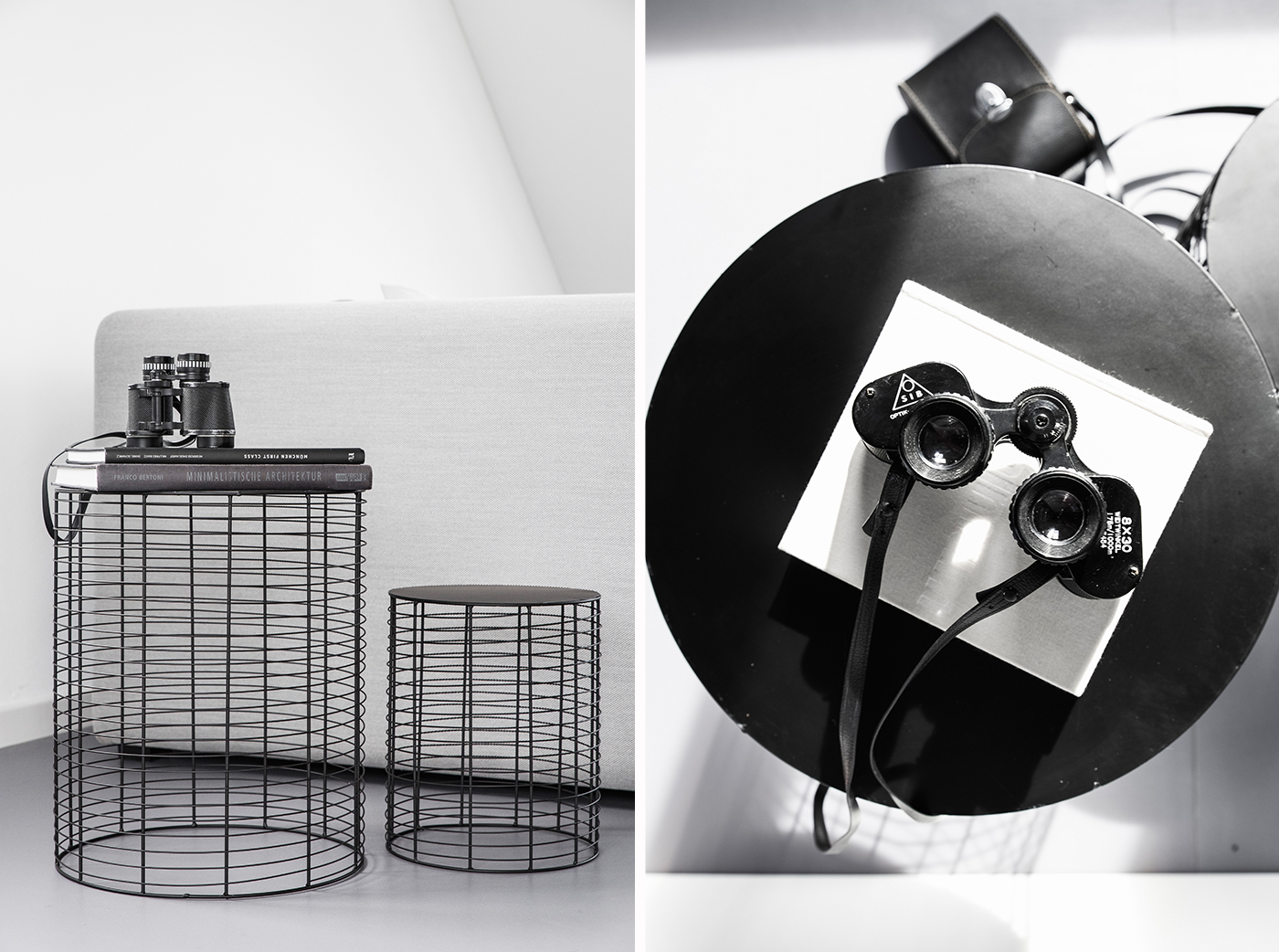 Diese Beistelltische aus Metall sind wahre Leichtgewichte. Ganz einfach lassen sie sich von einen Ort zum anderen tragen. Jetzt stehen sie im Wohnzimmer und machen sich auch optisch ganz leicht. Die filigrane Formgebung lässt dem kubischen Sofa Wirkungsfreiraum. Der Blick fällt durch die fein gearbeiteten Metallstreben, die dem Beistelltisch eine korbähnliche Struktur verleihen.