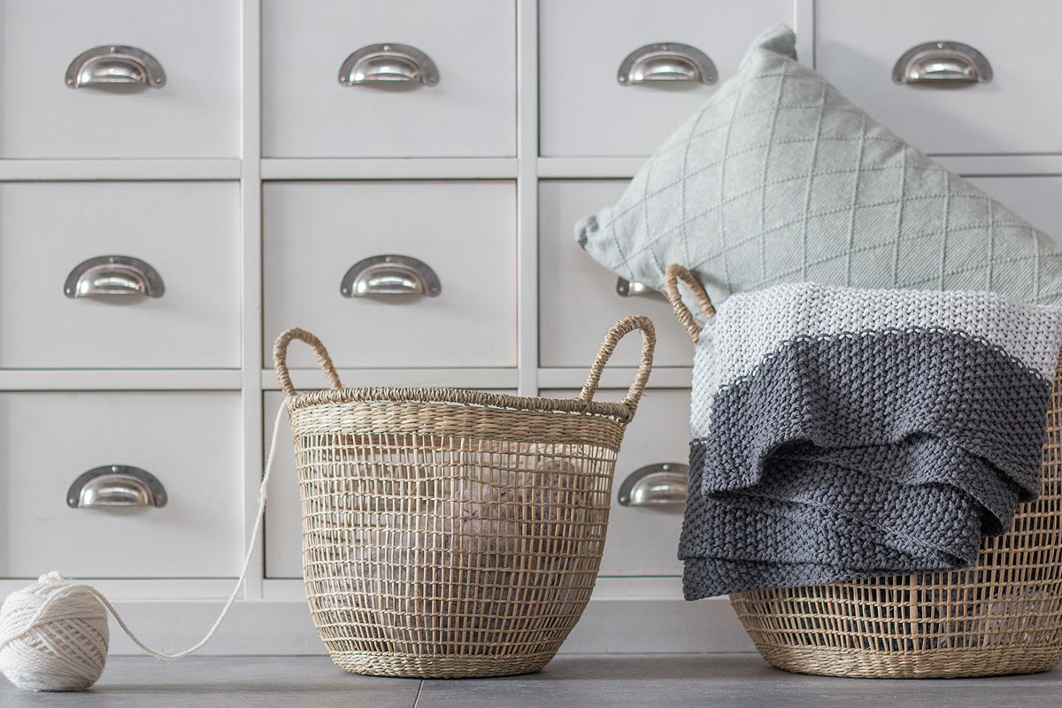 - Seegras Körbe als Deko im Wohnzimmer