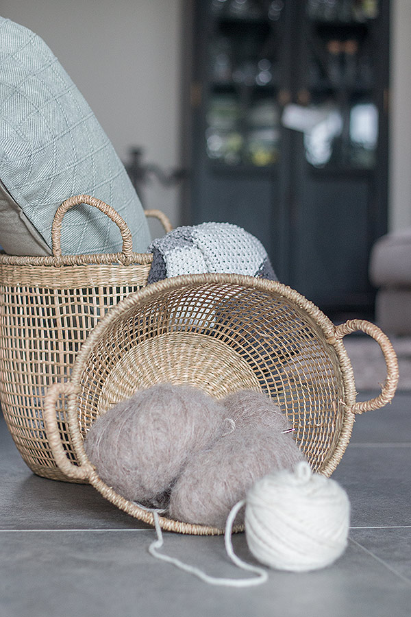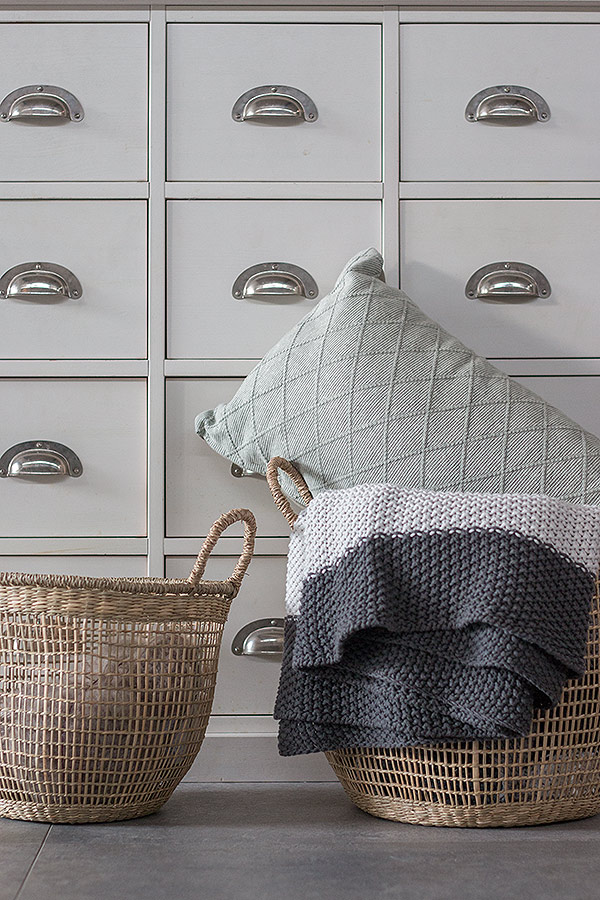 Diese Körbe aus 100% Seegras sind eine schöne Dekoidee und praktische Helfer zugleich. Schon lange war ich auf der Suche nach einer Aufbewahrungsmöglichkeit für meine Wolle. Die kalte Jahreszeit naht. Das heißt aber noch lange nicht, dass sich die Wolle in der hintersten Ecke verstecken muss. Die Seegraskörbe sind perfekt, um diese zu verstauen und auch zu zeigen. Aber auch kuschelige Decken & Kissen lassen sich gut in den Körben unterbringen. Und als 2er-Set machen die Körbe noch mehr her als alleine. Auch das Rautenkissen aus 100 % Baumwolle von DEPOT durfte mit in den Einkaufskorb. Ich mag besonders die Farbe, die je nach Lichteinfall zwischen Hellgrau und Hellgrün changiert.