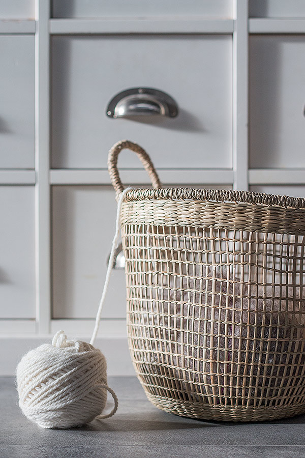 - Seegras Korb von DEPOT mit Wolle befüllt