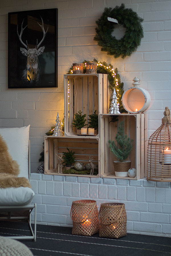 - Terrasse weihnachtlich gemütlich dekorieren mit Weinkisten